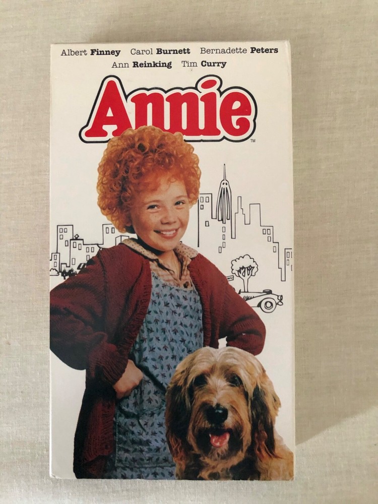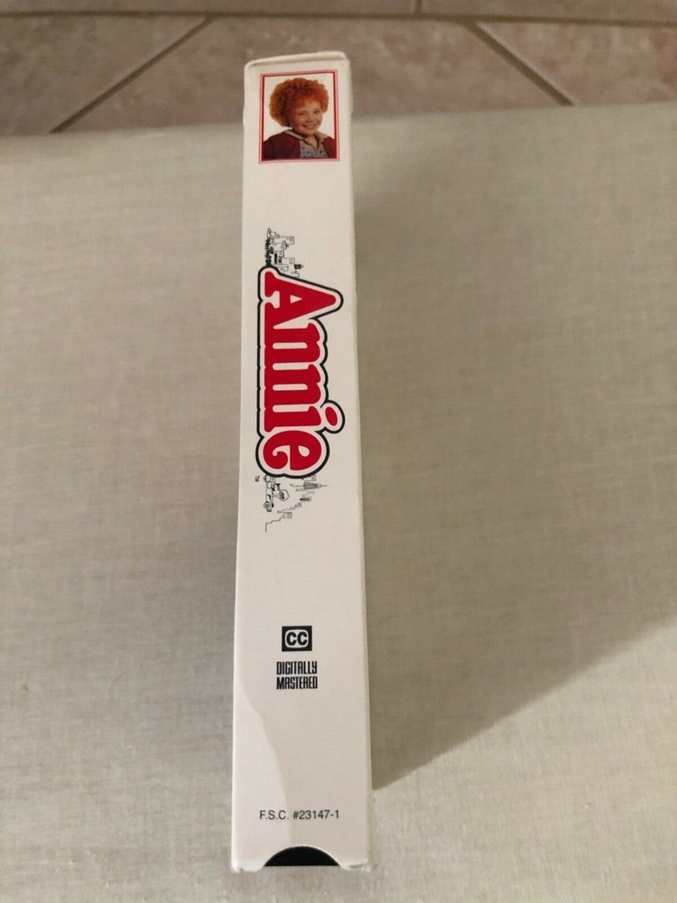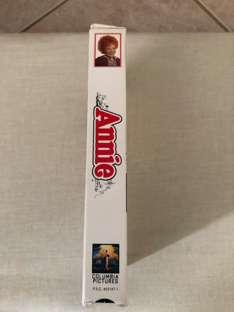 Annie, 1982 (VHS - 1994), Rated G, Albert Finney, Carol Burnett, Berndette Peters. Annie (1982), VHS from 1994. Rated G. Running time - 128 minutes. Director: John Huston. Cast: Albert Finney, Carol Burnett, Bernadette Peters, Tim Curry, Ann Reinking, Edward Herrmann, Aileen Quinn, Geoffrey Holder The case is slightly worn. The top of the case probably shows the most wear. There's a crease on one of the sides. Could be used for upcycle craft. I'm unable to check the video to see if it plays, but it's been sitting on a shelf for years, so I have no reason to believe that it was broken or unplayable. Condition is "Acceptable". Comes from a smoke-free and pet-free home. Shipped with USPS Media Mail.
