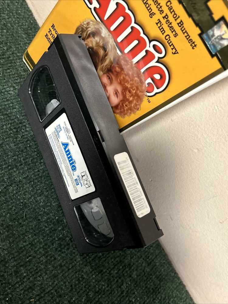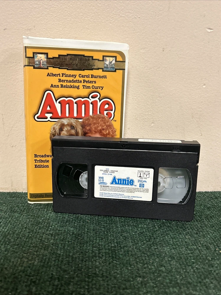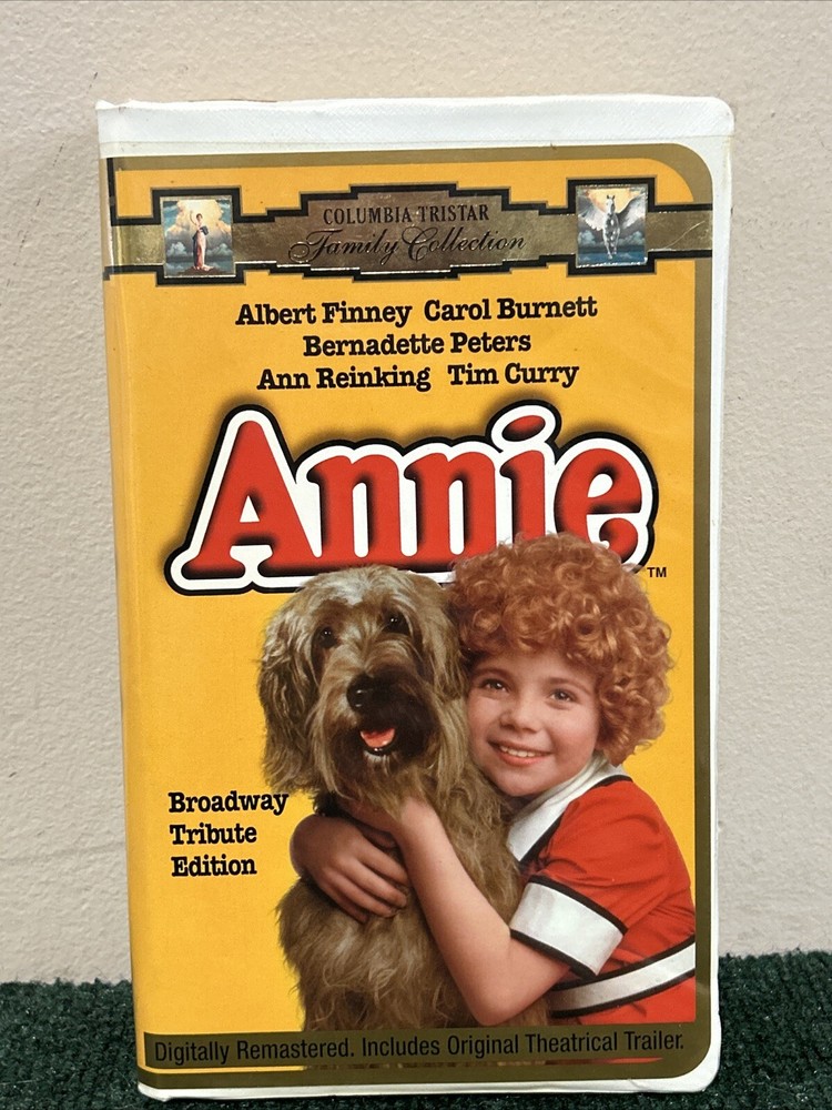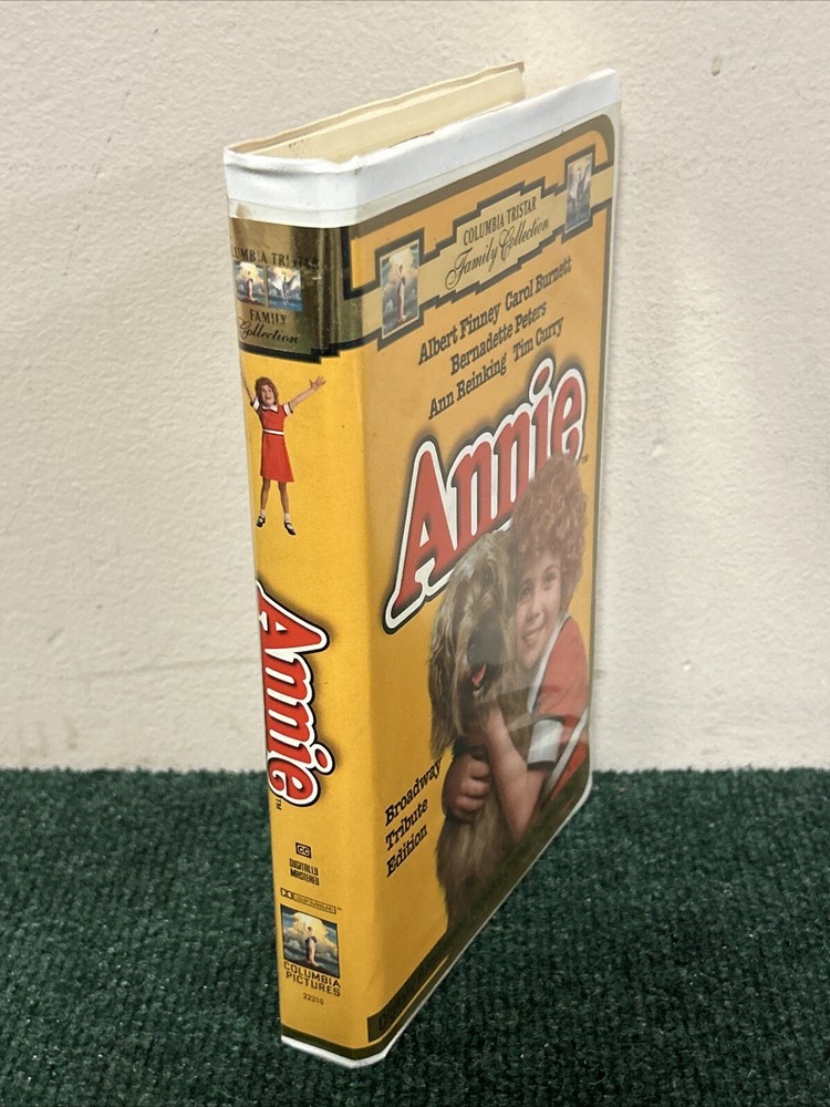 Title: Annie (1997) Broadway Tribute Edition - VHS Clamshell Case Description: Condition: Pre-owned in good condition. The VHS tape and clamshell case show minor signs of wear but are well-preserved overall. Product Details: - Brand: Columbia Pictures - Model: VHS Tape - Item Name: Annie (1997) Broadway Tribute Edition - Format/Type: VHS Tape - Category: Family, Musical, Classic Films - Year: 1997 - Label/Manufacturer: Columbia Pictures - Features: Starring Aileen Quinn, Carol Burnett, Albert Finney, and Bernadette Peters. Directed by John Huston. Celebrating the 20th anniversary of Annie's hit debut on Broadway, this digitally remastered version includes unforgettable songs like "It's a Hard Knock Life" and "Tomorrow." - Dimensions/Size: Standard VHS size with clamshell case - Color: Multicolor - Country/Region of Manufacture: USA Summary: Celebrate the 20th anniversary of Annie's hit debut on Broadway with this special Broadway Tribute Edition VHS! This digitally remastered version of the beloved musical stars Aileen Quinn as the plucky red-haired orphan Annie, with Carol Burnett, Albert Finney, and Bernadette Peters. Enjoy all the unforgettable songs and heartwarming moments in this classic family musical. The VHS tape and clamshell case are in good condition, showing minor signs of wear but well-preserved overall. A must-have for fans of Annie and classic musicals. Shipping and Handling: Carefully packed and shipped within 1-2 business days. Tracking number provided. Additional Information: Feel free to reach out with any questions or requests for more information. Happy watching! 😊 Reference: VHS Box 5