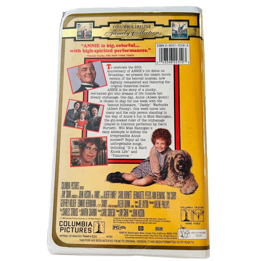 Experience the magic of Annie in this limited edition VHS release. Enjoy the timeless story of a spunky orphan girl who charms her way into the heart of a billionaire businessman, set against the backdrop of New York City. With an all-star cast featuring Albert Finney, Aileen Quinn, and Carol Burnett, this musical comedy is perfect for all ages. Relive the classic songs and heartwarming moments of Annie with this special edition VHS. This clamshell case release is a must-have for any fan of the Broadway musical genre. Add it to your collection today!