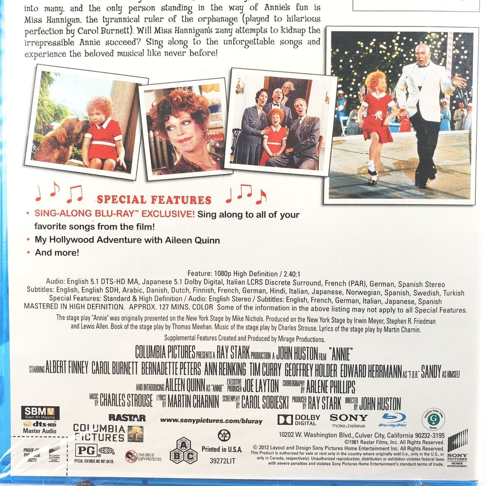 Annie 30th Anniversary Blu-ray NEW UV/HD Dolby Digital All Region Sing-Along SPECIAL FEATURES: - Sing-along Blu-ray Exclusive - Hollywood adventure with Aileen Quinn + More - Region Free Condition: NEW SEALED If you have any questions or need additional information, feel free to contact us anytime!