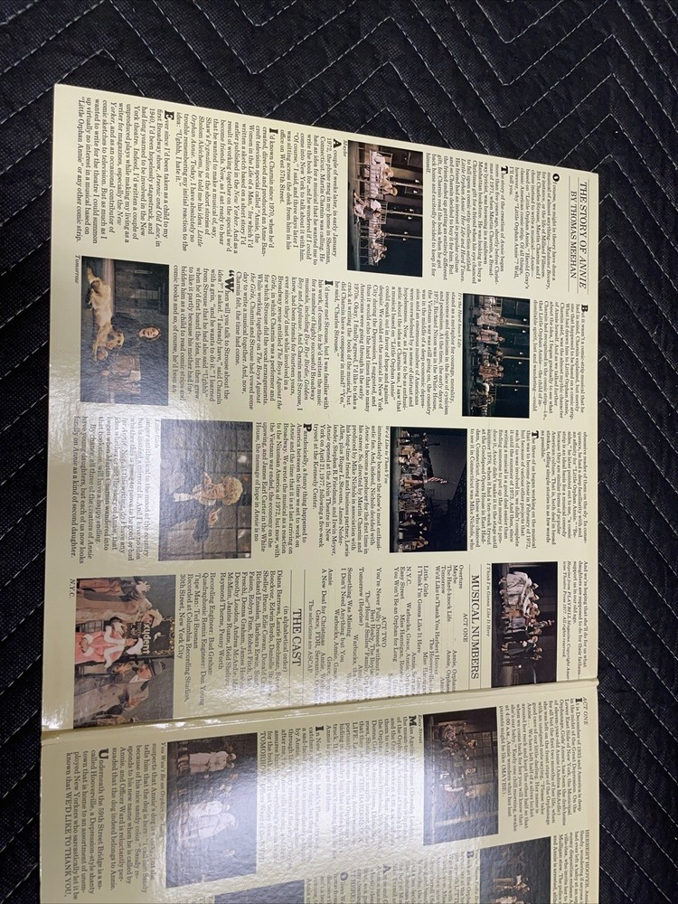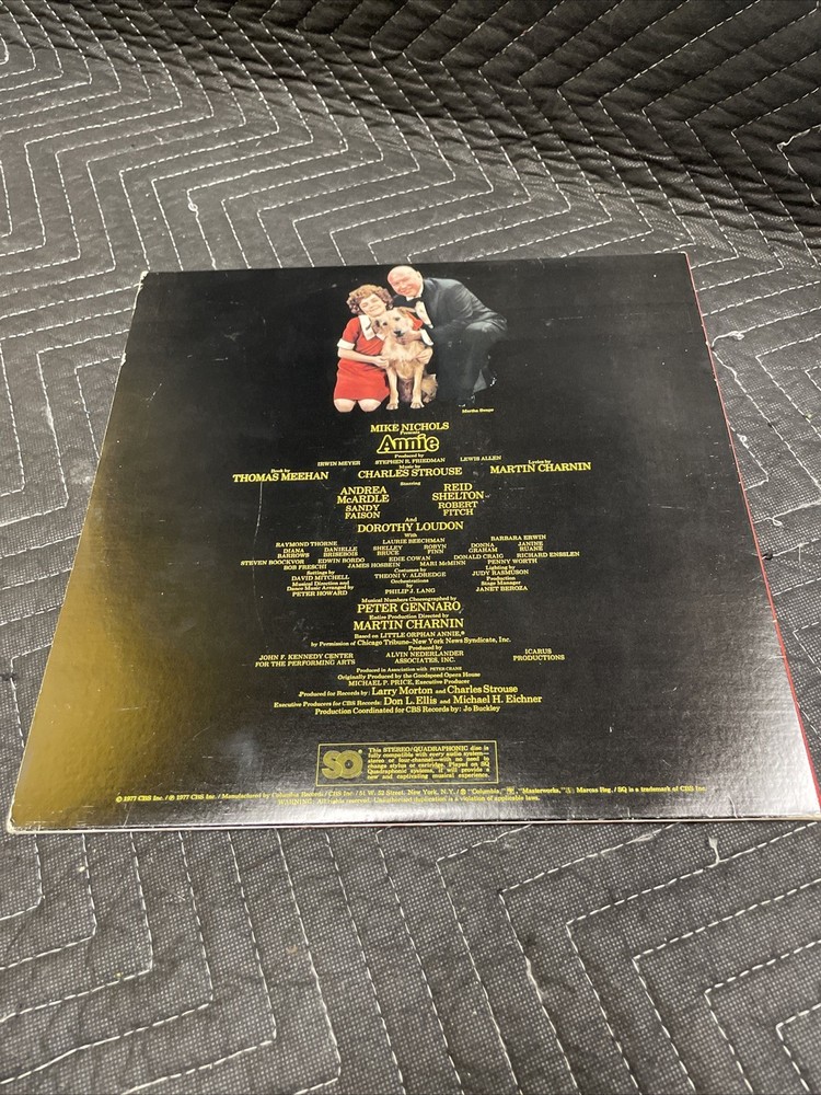 The product is a vintage CBS LP vinyl record album of the original release of "Annie A New Musical" from 1977. This 12" record features music and lyrics by Martin Charnin, and is in very good condition. The album comes in its original cardboard sleeve with the iconic cover art, making it a collector's item for fans of children's music and soundtracks & musicals. With a speed of 33 RPM, this LP provides a nostalgic listening experience for those who appreciate classic musical scores. May have some minor surface scratches or blemishes that do not affect playability. In good condition.