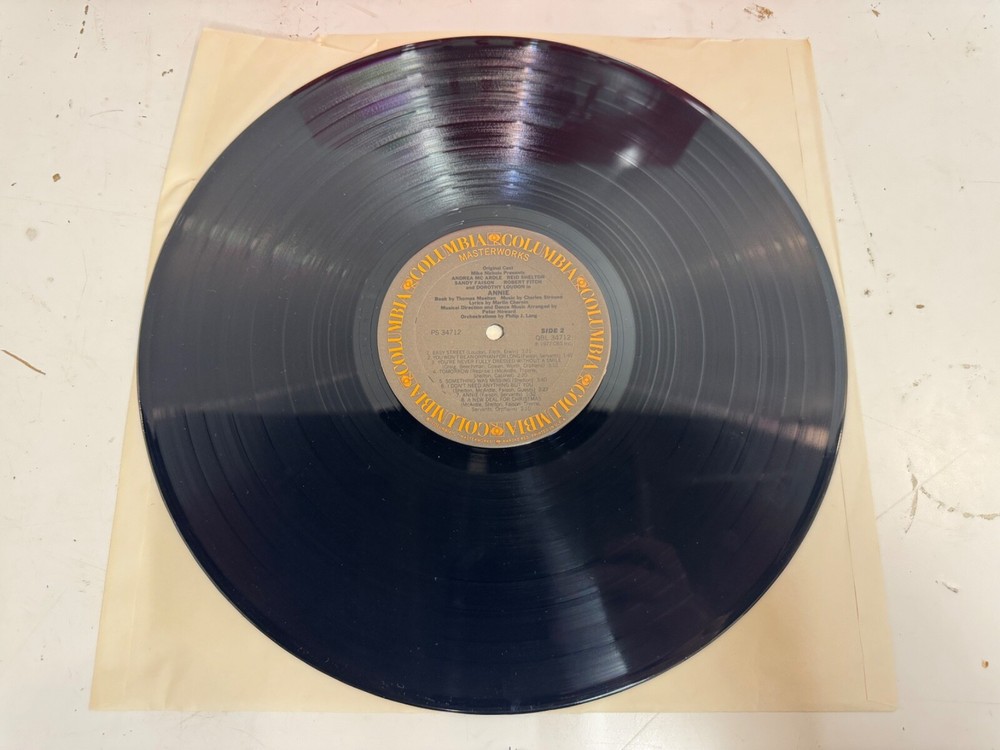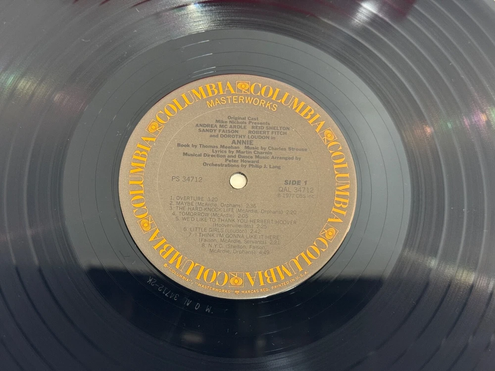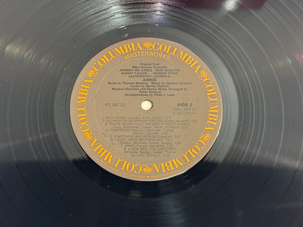 Dive into the timeless charm of the original Broadway cast recording of 'Annie - A New Musical' on vinyl. Released in 1977 by Masterworks Records, this LP captures the essence of the 1970s musical era with its vivid sound quality and classic black vinyl material. The album is a treasure for enthusiasts of musicals and Broadway genres, featuring iconic tracks that bring the show's spirit to your turntable. This first pressing edition is a collectible that comes in its original cardboard sleeve, celebrating the artistry of the era with an unmodified, authentic experience. The record spins at 33 RPM, allowing for an uninterrupted enjoyment of the soundtrack that has been a beloved part of musical history. Proudly made in the United States, this album is a piece of Americana for both collectors and fans alike. This piece is in decent condition with some various forms of wear and scuffs to the sleeve as can be seen in the pics and everything ships exactly as shown. Keep in mind the shipping price also covers handling fees, packaging materials & time, not just postage. See our eBay store for thousands of our other items. Case 5