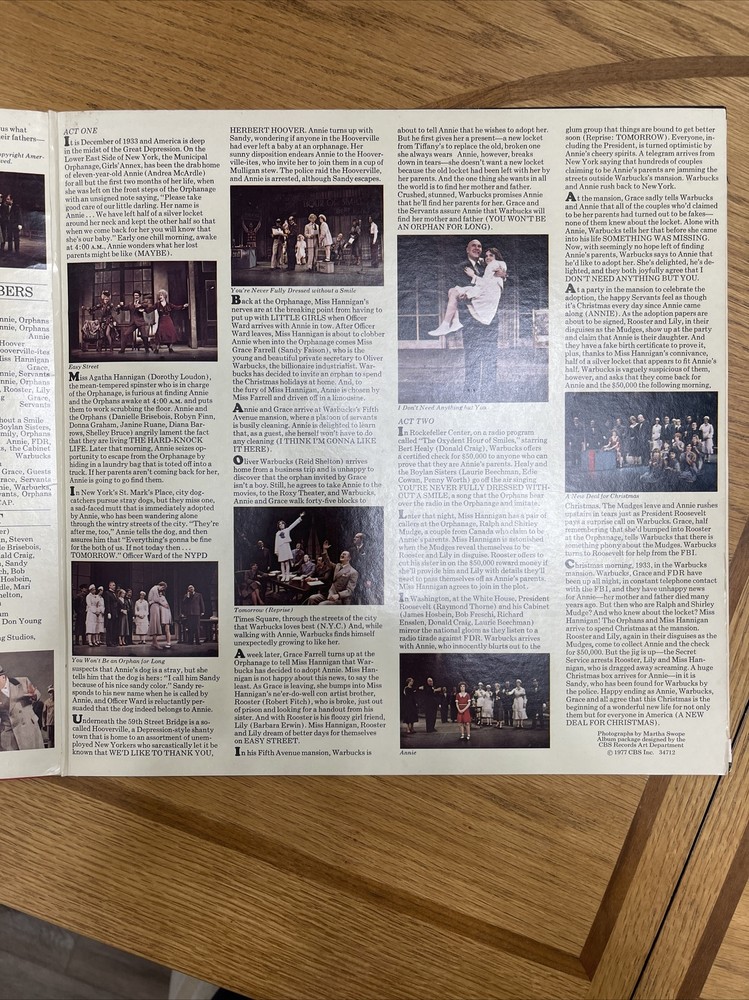 Annie A New Musical Original Cast 1977 LP Gatefold VINYL Record COLUMBIA.