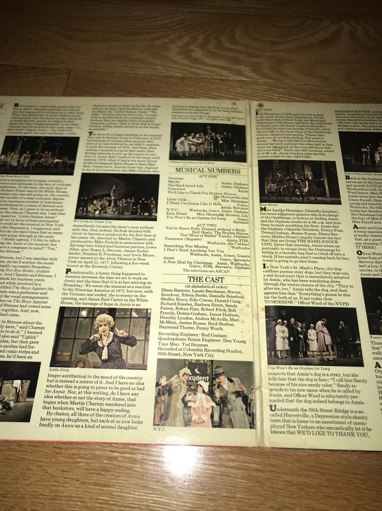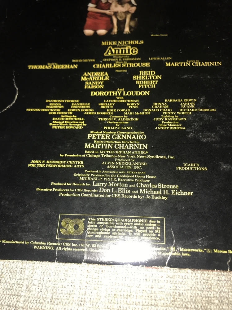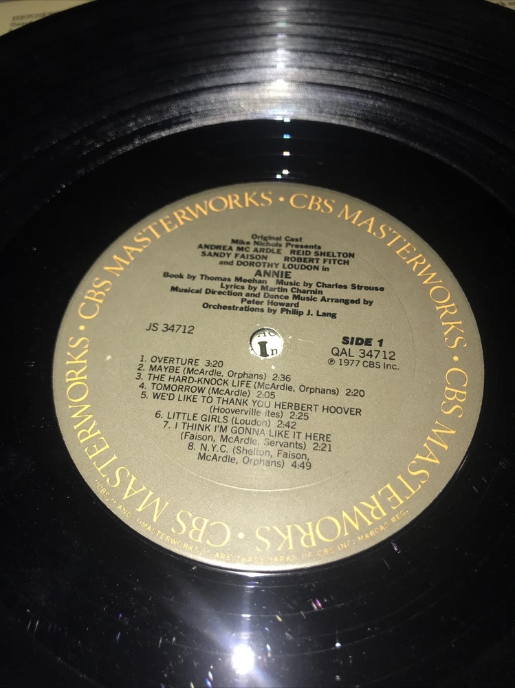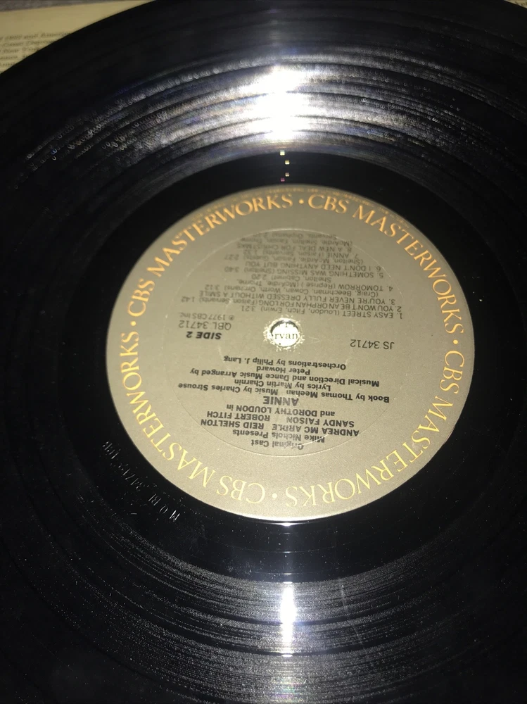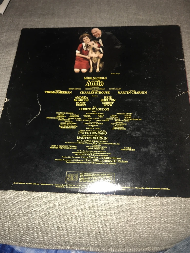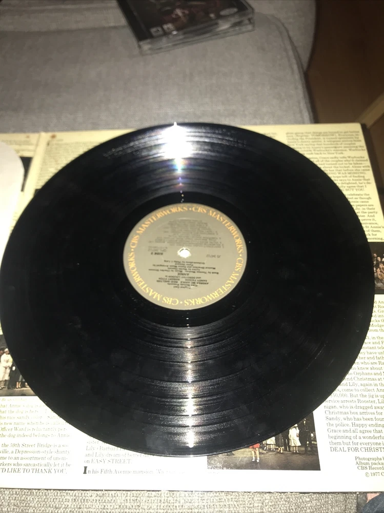 This vinyl record features the original cast of Annie: A New Musical, with a 33 RPM speed and 12" record size. The record label is CBS Records and the material is vinyl, with a cardboard sleeve case type. The inlay condition is listed as good (G), while the record grading and sleeve grading are both very good plus (VG+). The soundtrack is a must-have for fans of musicals and includes the instrument of recorder. The release title is Annie: A New Musical Shotunes Soundtrack, in black color, and features the original cover design. This LP falls under the categories of Music and Vinyl Records, with a genre of Soundtracks and Musicals.