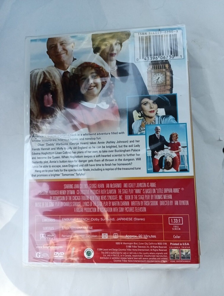 Get ready for a royal adventure with Annie! This DVD, released in 1995, features a delightful comedy video directed by Ian Toynton. The movie follows the story of a young girl named Annie who embarks on a journey to save her family's home from a group of thieves. With the help of a friendly dog and a magical horse, Annie puts on a royal coronation pageant to raise funds and awareness for her cause. This DVD is presented in English and French with a G rating and a run time of 92 minutes. It is a great addition to any family's movie collection and is produced by Sony Pictures. Don't miss out on this classic sub-genre of family movie! See photos for conditions If you have any questions or concerns, please ask before buying I will combine multiple orders and refund the shipping difference back to you. Listing and template services provided by inkFrog
