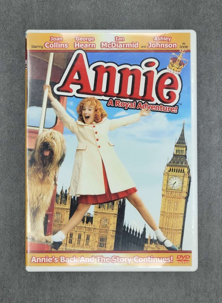 payment | shipping rates | returns Annie - A Royal Adventure Product Category : DVDs UPC : 043396067301 Title : Annie - A Royal Adventure EAN : 0043396067301 Actor : George Hearn, Ashley Johnson, Emily Lloyd, Ian McDiarmid, Joan Collins Director : Ian Toynton Studio : Sony Pictures Home Entertainment Running Time : 92 minutes Release Date : 2004-08-31 Theatrical Release Date : 1995-11-18 Rating : G (General Audience) Region : 99 Format : Multiple Formats, Dubbed, Full S Languages : english Subtitled, japanese Dubb Discs : 1 List Price (MSRP) : 9.99 Height : 0.5800 inches Width : 5.4200 inches Length : 7.1000 inches Weight : 0.1800 pounds Condition : Very Good About GoPeachy Our company is dedicated to providing you with the best quality, lowest cost products on eBay. **** IMPORTANT: DIGITAL CONTENT, IF APPLICABLE, CANNOT BE GUARANTEED ON ALL USED PRODUCTS SINCE, FOR USED PRODUCTS, THERE WERE PREVIOUS OWNERS WHO OFTEN REDEEM THIS ONE-TIME USE CONTENT; Do not make this purchase if you expect digital content to be guaranteed **** Payment We accept PayPal for all eBay orders. Please see payment details below. Shipping Multiple shipping options are available for this item. For more detail, please see below, and select the shipping option that is most convenient for you. International Shipping: Import duties, taxes, and charges are NOT INCLUDED in the item price or shipping charges. These charges are the buyer's responsibility. Please check with your country's customs office to determine what these additional costs will be prior to bidding / buying. These charges are normally collected by the delivering freight (shipping) company or when you pick the item up do not confuse them for additional shipping charges. We do not mark merchandise values below value or mark items as "gifts." US and International government regulations prohibit such behavior. Returns Your satisfaction is very important to us. Please contact us via the methods available within eBay regarding any problems before leaving negative feedback. Any defects, damages, or material differences with your item, must be reported to us within 7 days of receipt of the item or 30 days from date of shipment. The returned merchandise must be postmarked within 30 days of the shipment notification. Non-deliveries must be reported within 30 days of Shipment Notification. Undeliverable, unclaimed, refused, or insufficient addresses will be subject to a 20% restocking fee plus the cost of shipping. © 2024 GoPeachy