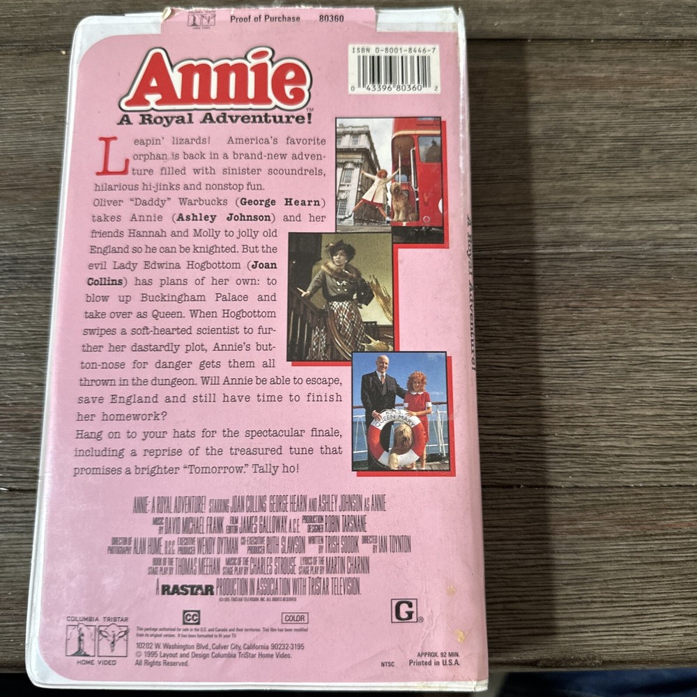Experience the enchanting tale of Annie: a Royal Adventure! This classic musical, directed by Ian Toynton, features a talented cast including Ashley Johnson as the lead. The VHS tape comes in a closed caption and clam shell case edition, making it a perfect addition to any collection. The movie is rated G and is in NTSC signal standard. It is not a former rental and is in English language. This Broadway-style musical is a must-watch for all fans of the genre. Get your copy today and enjoy the timeless story of Annie on your own personal screen.
