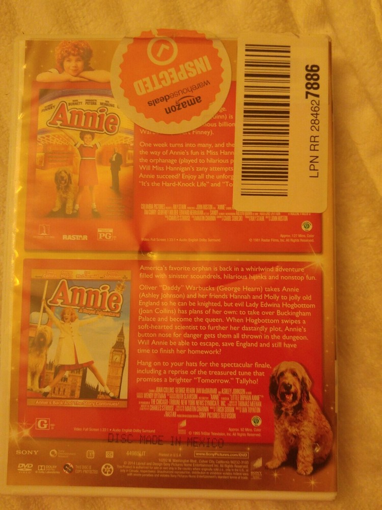 Annie / Annie: A Royal Adventure, DVD DOUBLE FEATURE. Condition is Like New. Shipped with USPS Media Mail....