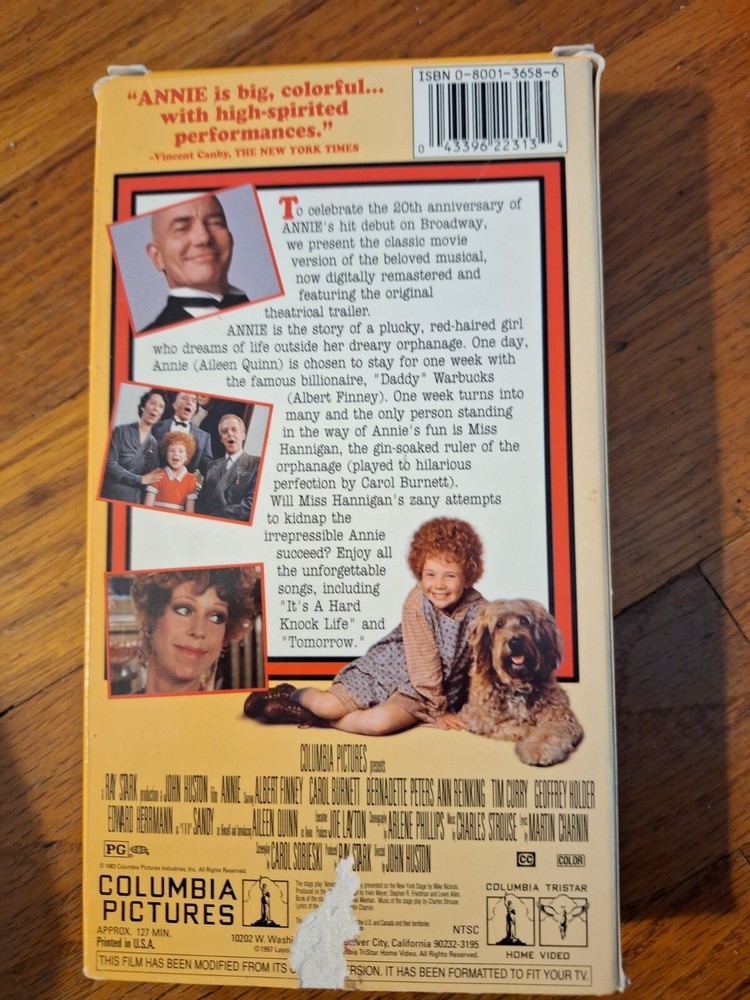 This Annie Broadway Tribute Edition VHS Movie is a must-have for any fan of the classic musical. With unforgettable songs and heartwarming performances, this VHS tape will transport you to the world of Annie and her quest for a forever home. Relive the magic of this beloved story with this VHS tape, which is in great shape and ready to be enjoyed. Whether you're a longtime fan or a newcomer to the world of Annie, this Broadway Tribute Edition VHS Movie is sure to delight.