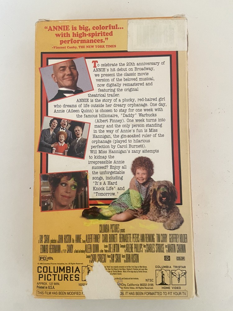 Description: Annie Broadway Tribute Edition VHS Movie Excellent Pre-owned Condition See pictures – this is exactly what you will receive. Smoke free home Shipping: We ship all of our items within one (1) business days from receiving a cleared payment. All of our items are available to the 48 Continental United States, as well as Hawaii and Alaska. We try to keep our shipping charges fair and reasonable. Please remember these prices include not only shipping charge Terms of Sale: We are glad that we are able to provide you with quality items at affordable prices. Please be sure of your intent on purchasing an item if you place a bid on an item. We do file unpaid item disputes through eBay if an item is purchased and not paid for. Please check out the return policies for our items as they tend to be different between our different product lines. Since eBay relies heavily on the "Feedback" system please do not leave negative feedback prior to contacting us. We will work with a customer to resolve any issues that arise during a transaction. We will leave feedback for you as soon as feedback is received to ensure that you are completely satisfied with the eBay transaction. Contact Us: Please contact us if you need anything