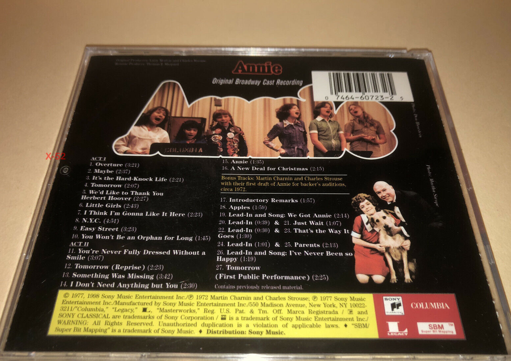 Offering the OFFICIAL release CD: ANNIE The Original Broadcast Cast Recording with Bonus Tracks Questions welcome / More CDs TOYs MOVIEs in OUR ebay store https://www.ebay.com/str/X-52-STORE?_trksid=p2047675.l2563 Reduce shipping with another purchase
