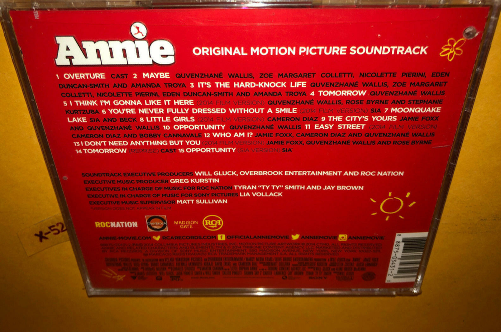 Offering the Official release CD: ANNIE movie soundtrack to the 2014 release Brand New Unopened CD - hole on top left corner as shown Questions welcome / More CDs TOYs MOVIEs in OUR ebay store https://www.ebay.com/str/X-52-STORE?_trksid=p2047675.l2563 Reduce shipping with another purchase in our store