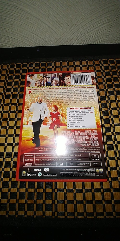 Enjoy a heartwarming family musical with this Annie DVD from 1982. Follow the adventures of the young orphan girl as she navigates her way through a tough life in New York City. This classic film is perfect for all ages and is sure to bring a smile to your face. Produced by Sony Pictures, this DVD features a PG rating and is a must-have for any movie lover. Get your hands on this timeless piece of cinematic history today!