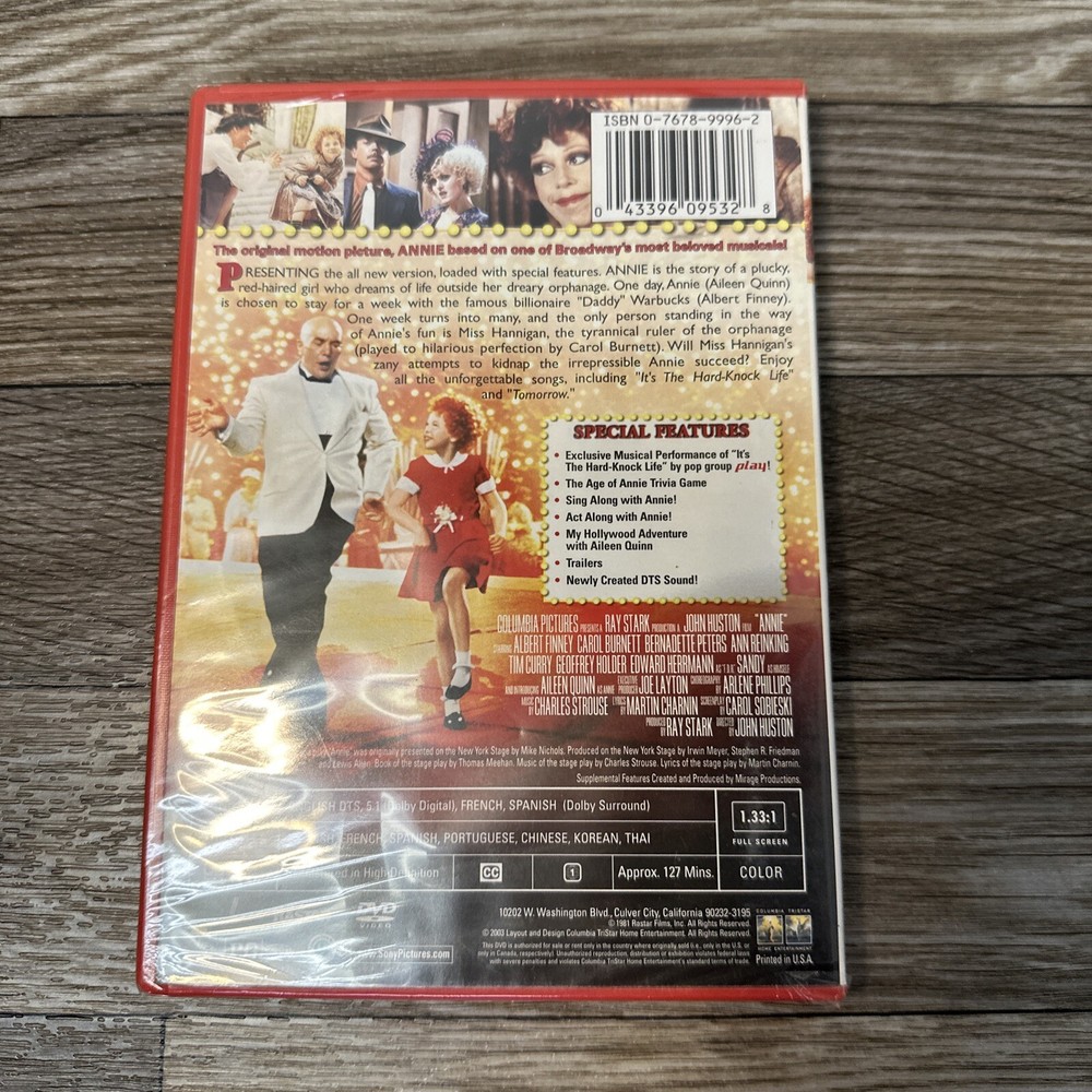 Experience the heartwarming tale of a spunky, independent girl and her journey to find her true family in the classic musical film, Annie. This DVD features the 1982 release, produced by Bridget Ikin, Raymond Stark, and Trevor Haysom, with direction by John Huston. Enjoy the film in English, French, Spanish, or any of the subtitle languages available, including Chinese, English, French, Portuguese, and Spanish. With a PG rating and a run time of 127 minutes, this family-friendly movie is perfect for any musical-loving household. Add this gem to your collection today.