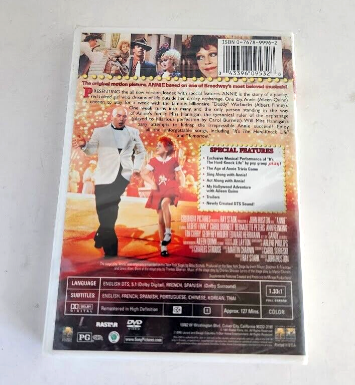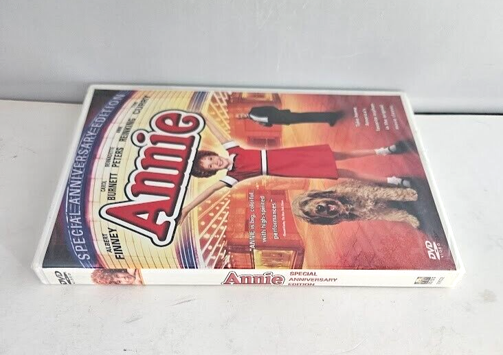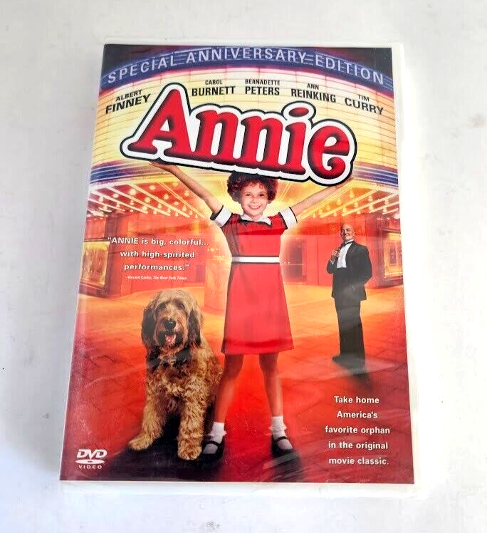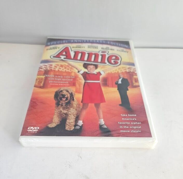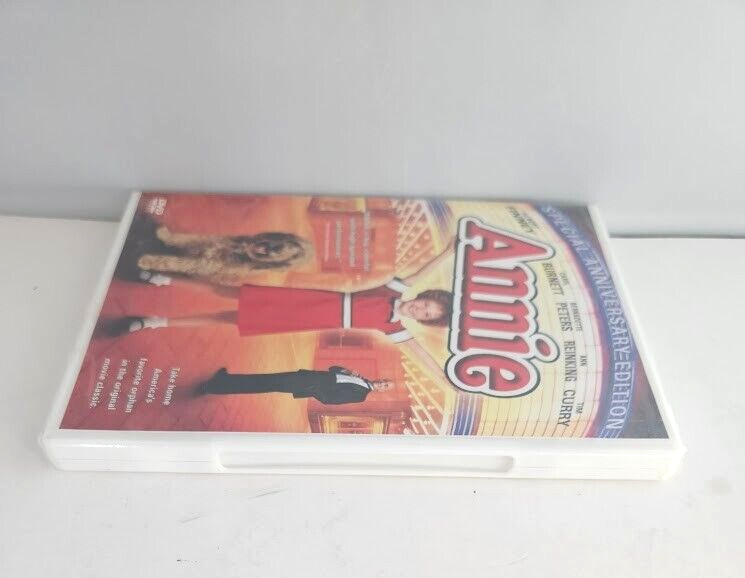 The "Annie" DVD is the 2003 Special Anniversary Edition of the beloved musical film directed by John Huston. It features a star-studded cast including Ann Reinking, Albert Finney, Tim Curry, Bernadette Peters, and Carol Burnett. This DVD is formatted in Full Screen with English, French, and Spanish subtitles available. The runtime of the movie is 127 minutes, suitable for a PG audience, and includes special features. Perfect for fans of musicals and family-friendly films, this edition offers a nostalgic viewing experience for all ages. Condition:Sealed(New)