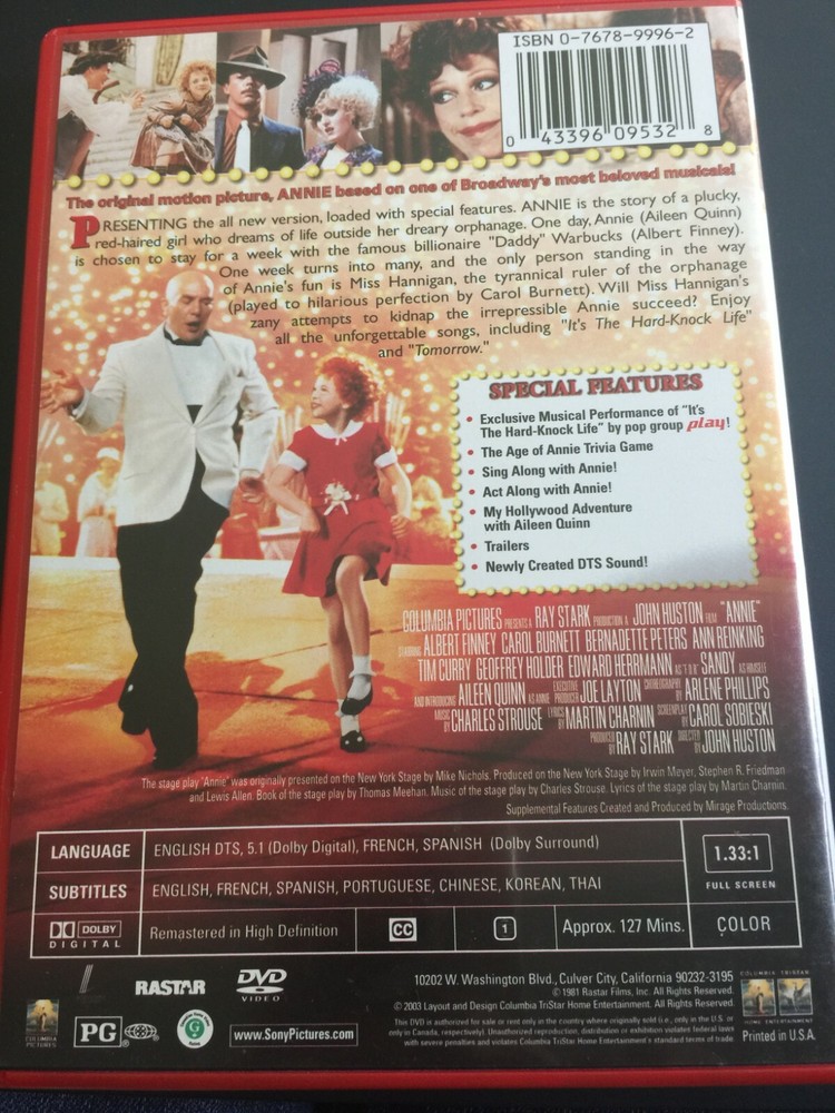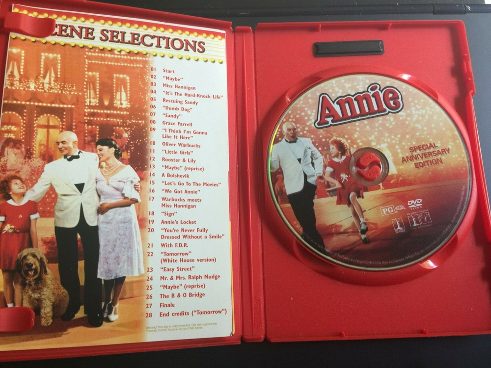 Annie DVD is in good condition with minimum markings on disc A few scratches on outer front of case Shipped via media mail with tracking Thanks for shopping with me!