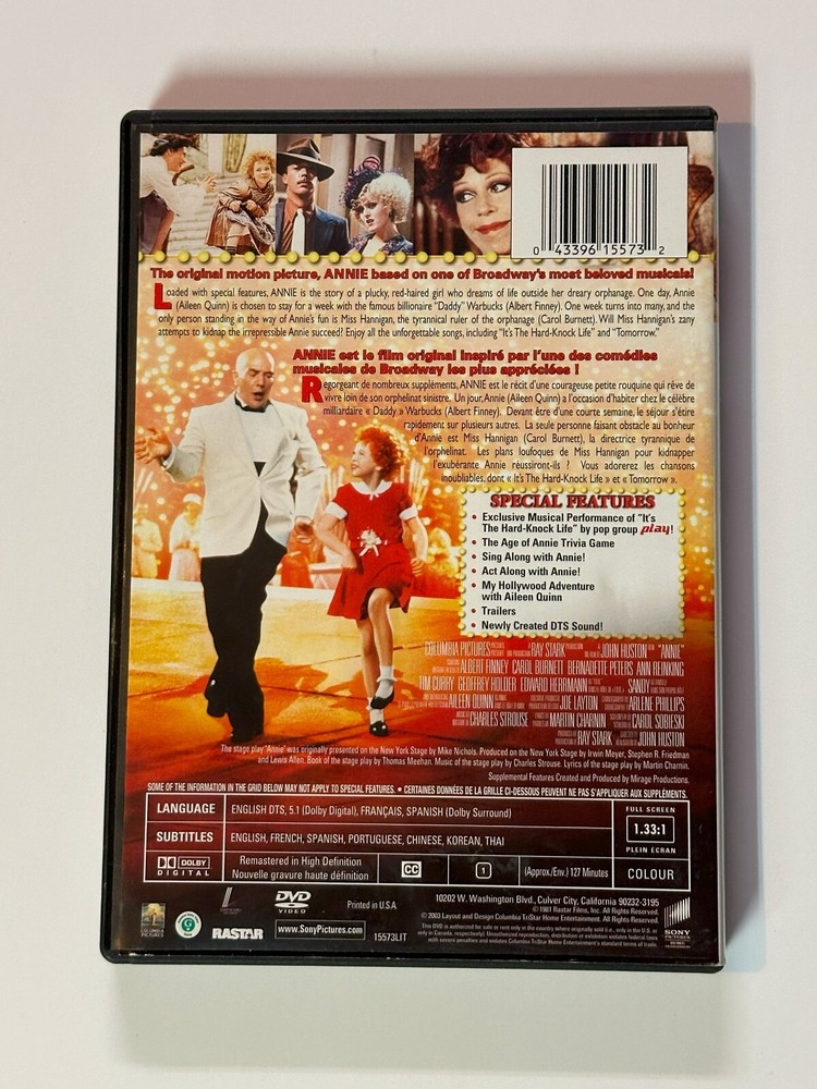Annie | DVD - Special Edition Movie is used and in good condition. The disc has been tested as functioning. The disc has few scratches or signs of use. The case is in fair condition, but has some stickers on the case. You will receive the complete DVD with Disc and Case. Please see all photos of the item to view its condition. If interested in purchasing multiple items or combining shipping, you can send me a message to inquire.