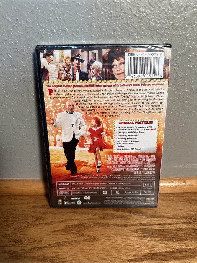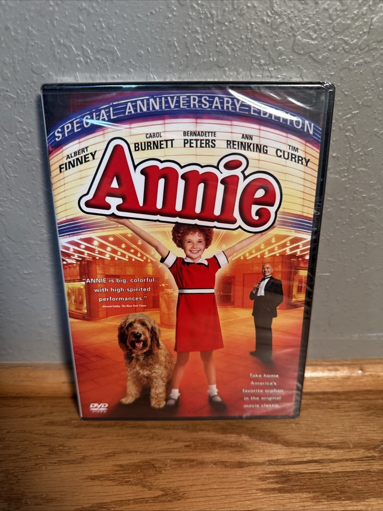 The "Annie" DVD Special Anniversary Edition from 2003 features Carol Burnett in the iconic 1982 film. This DVD is in Full Screen format in a Tall/DVD case. Produced by Sony Pictures, this special edition includes additional features. The DVD is brand new and sealed.