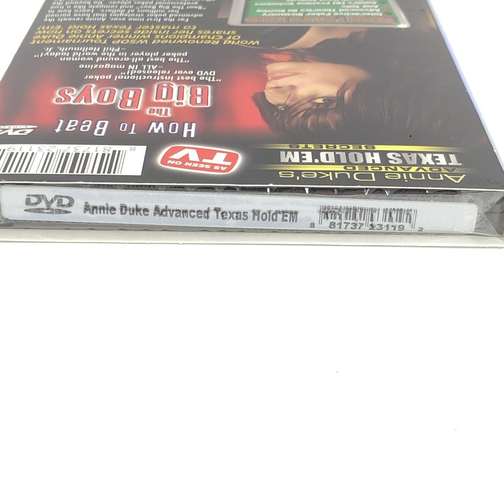 Annie Duke's Advanced Texas Hold 'Em Secrets DVD. Condition is Brand New sealed. The DVD will be shipped out the next business day after payment is made. Please check out my eBay store for a great mix of eclectic items!