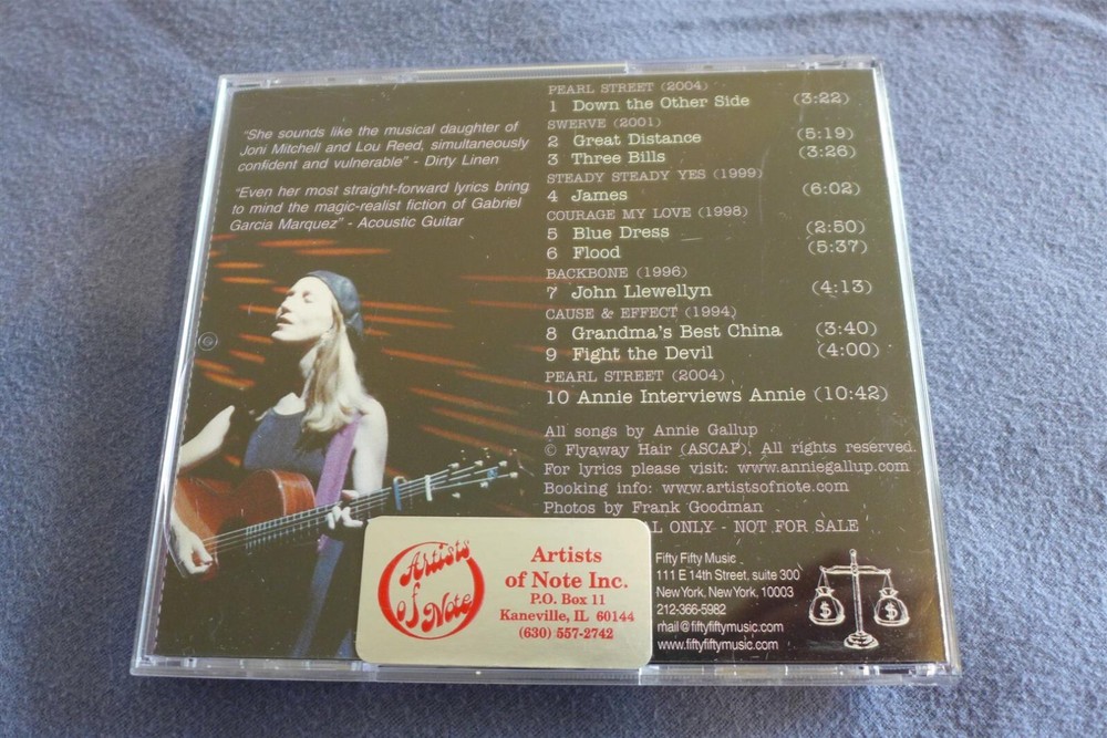 Annie Gallup SELECTED SONGS 1994-2004 Flyaway Hair Promo CD Take a look at the pictures for more information. Photos are of the exact item you will receive. CD, booklet, tray insert and case are in wonderful condition and it plays perfectly. From a non-smoking and pet-free home. No bad odors. Check out my other CD lot and singles listings and save on shipping! Shipping is FREE for any additional single CDs purchased (within the U.S.) INTERNATIONAL BIDDERS: I can ship without the cases (discs and inserts only) for less than the quoted shipping price. Better deals on combined lots. Please contact me for a quote. Please contact me with any questions. Free pick-up in the Bellingham, WA area. SHIPPING OPTIONS: Please use the shipping calculator Items will ship within 48 hours. Take a look at my feedback and bid with confidence! Thanks for looking!