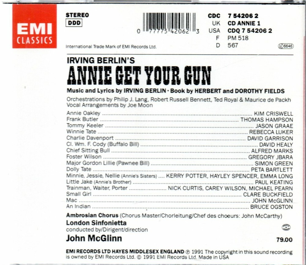 Annie Get Your Gun [1990 Studio Cast] by Irving Berlin (EMI CD 1991)