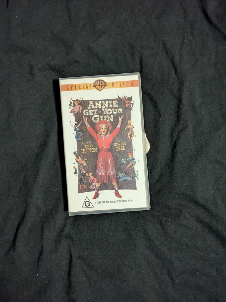 Discover the charm of the classic musical comedy 'Annie Get Your Gun' featuring the delightful Betty Hutton. This VHS tape offers a nostalgic trip down memory lane, showcasing the timeless humor and wit that only a cinematic treasure like this can provide. Perfect for collectors and enthusiasts of vintage media, this VHS tape brings the memorable performances and catchy tunes of 'Annie Get Your Gun' right into your living room. Enjoy a piece of film history with the convenience and charm of this classic musical comedy.