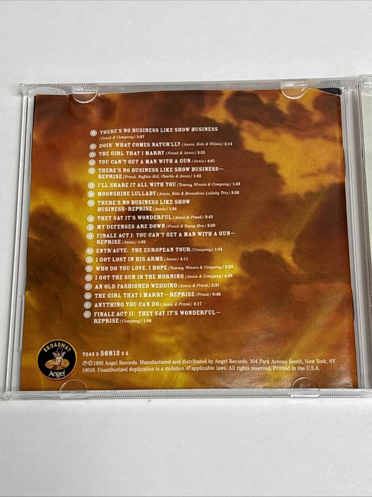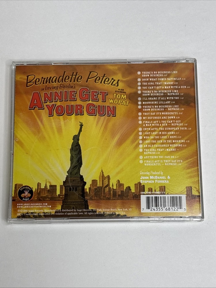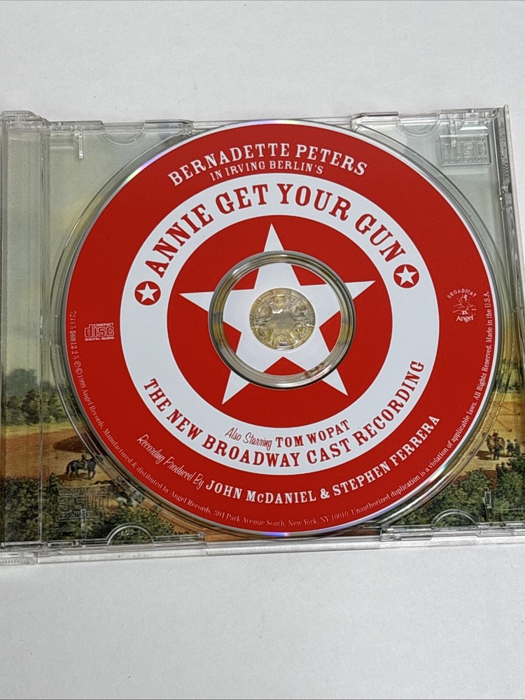 Annie Get Your Gun Broadway Cast Recording Bernadette Peters Tom Wopat 1 Disc CD Tested and plays without issues Disc has light wear case is worn from smoke free environment...