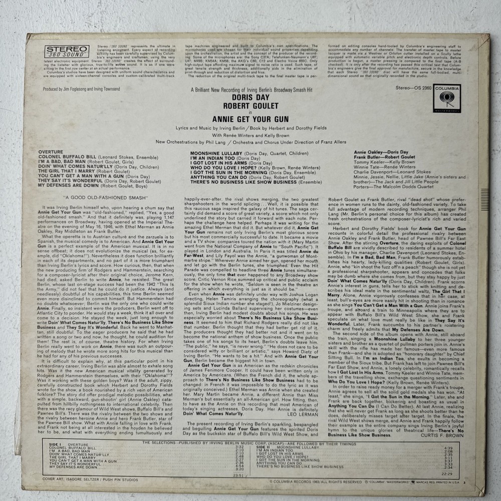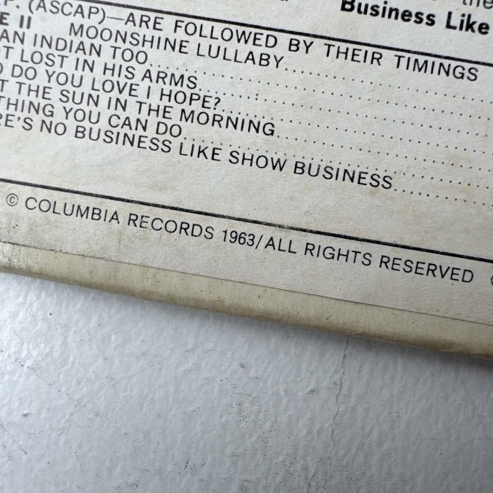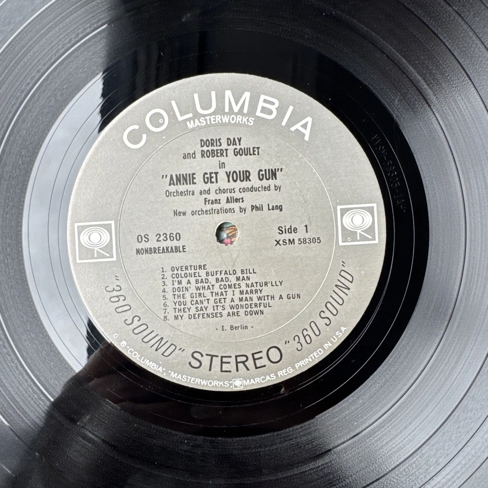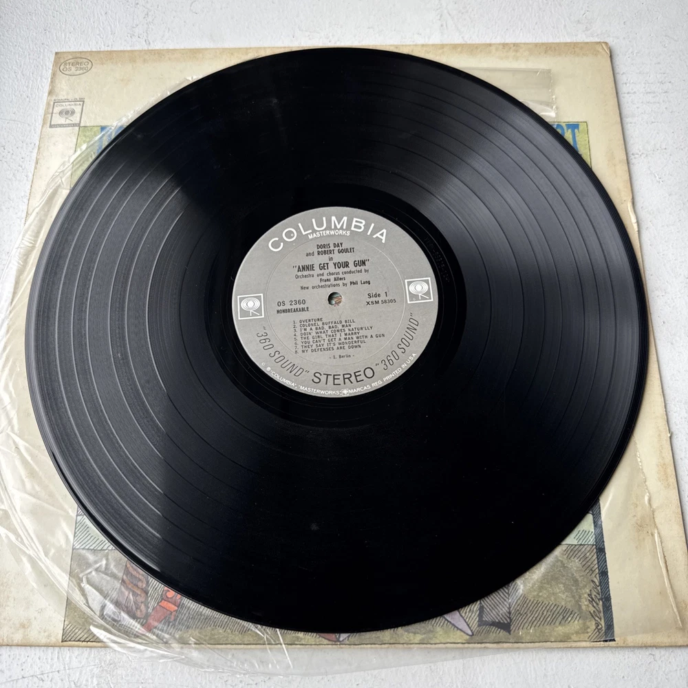 The product is a vintage vinyl record album from the 1963 Broadway production of "Annie Get Your Gun" featuring artist Doris Day. Released by Columbia, the LP comes in a 12" cardboard sleeve and is in stereo format. The record plays at 33 RPM and is in black vinyl material, showcasing a musical/original cast style. This piece of nostalgia captures the essence of the iconic musical and its memorable soundtrack, making it a must-have for collectors and fans of classic Broadway shows. The cover shows signs of wear due to age but the record appears to be in great shape. Record is untested. Purchased from an auction or estate sale. Please be sure to look at all the photos. Sold as is. Be sure to check out my other listings. Please let me know if you have any questions! Thanks for looking!