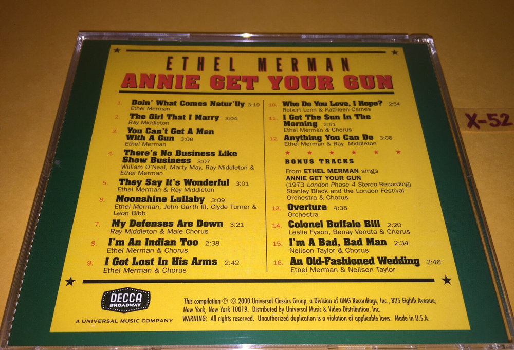 Offering the OFFICIAL release CD: ETHEL MEMAN in ANNIE GET YOUR GUN musical See Photo for Track List Questions welcome / More CDs MOVIEs TOYs BOOKs in EBAY STORE reduce shipping on multiple buys - contact us