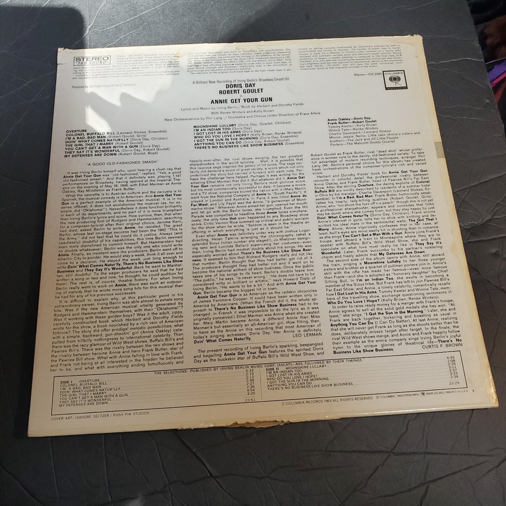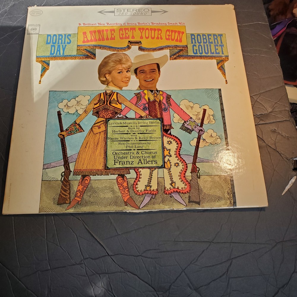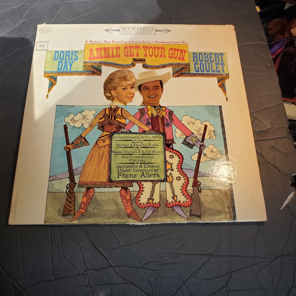 This vinyl LP features the iconic duo of Robert Goulet and Doris Day, with the soundtrack from the 1963 musical film "Annie Get Your Gun". The record is in 33 RPM and has a cardboard sleeve case type, with a 12" record size. The release title is "Annie Get Your Gun" and it is an edition from 1963, with a stereo number of audio channels. The record label is Columbia and it is a LP type, with a musical style and soundtracks & musicals genre. The release year is 1963 and the language is English. This item is perfect for collectors and fans of classic musicals.
