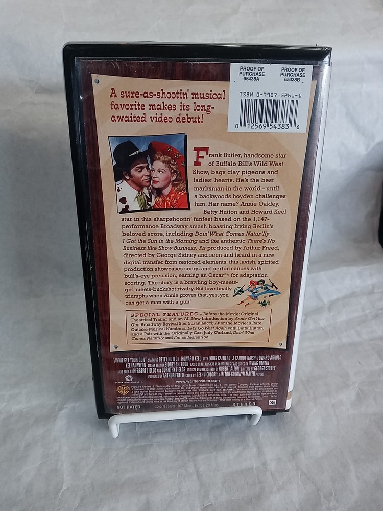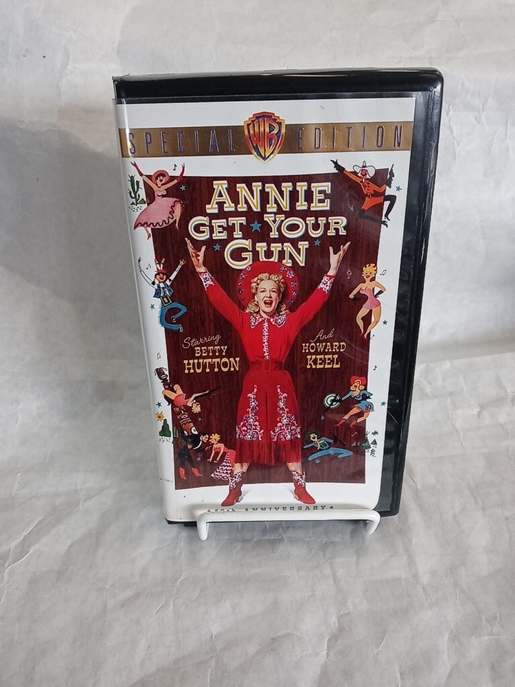 Experience the classic Broadway musical Annie Get Your Gun with this 50th Anniversary Edition VHS tape. Starring the talented Howard Keel and Betty Hutton, this film directed by George Sidney is a must-watch for fans of musicals and performing arts. The movie title showcases the iconic characters and storyline that has been captivating viewers for years. With a signal standard of NTSC and a rating of NR, this VHS tape is perfect for those who enjoy the sub-genre of musicals. The film is also ideal for collectors of movies and TV shows in VHS format. Don't miss out on the chance to own a piece of Broadway history with this 50th Anniversary Edition of Annie Get Your Gun. Pictures are of the actual item you will receive. We do the best we can to keep our buyers informed. If item is new unused it will be stated, but most of our items come from flea markets, yard sales, estate sales, and storage lockers. Feel free to ask any questions you may have. Please check out our eBay store for more new and used items. We combine shipping when more than 1 item is purchased. Thanks for looking. If for some reason there is a problem or issue please contact us first. We do the best we can to make sure our buyers are satisfied, but we are human and can make mistakes. If a problem does arise please contact us and we will do the best we can to make it right