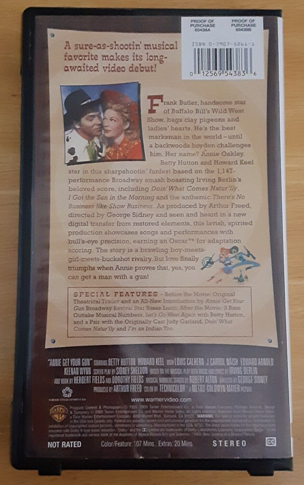 Annie Get Your Gun VHS 2000 Special 50th Anniversary Edition musical western Very good preowned condition. No major flaws or defects. Includes tape and case/art. The tape is very good and works great. The case is also very good with no cracks or stains. Please see pictures or send a message for more detail. Packed with care and shipped out fast!