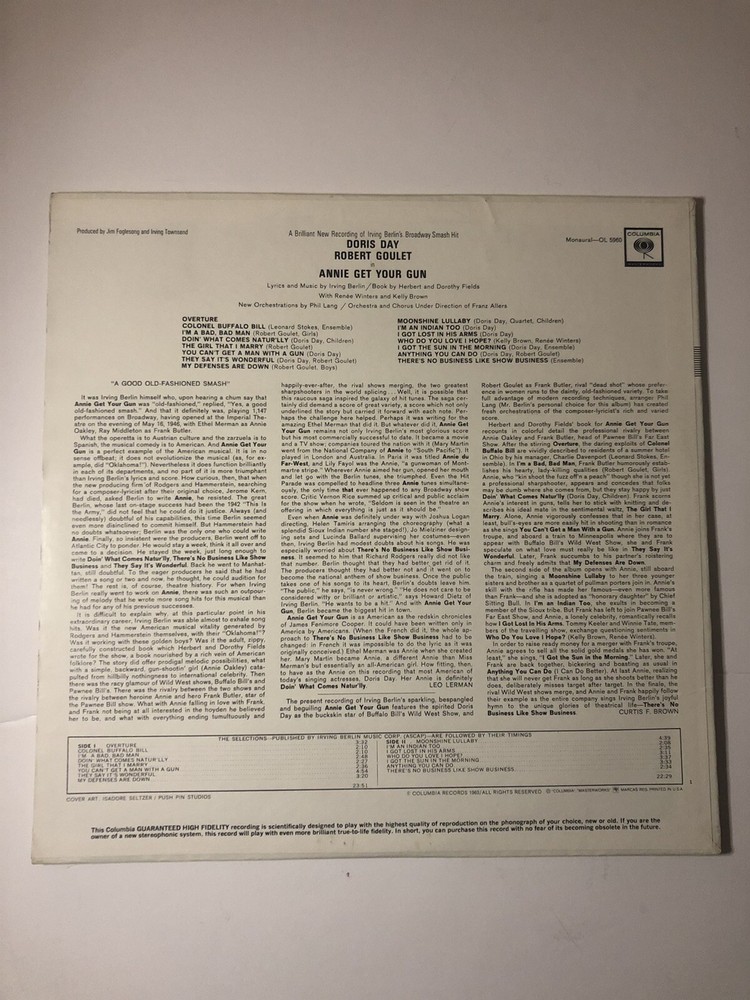 Annie Get Your Gun Vinyl LP Soundtrack to Original Broadway Cast....