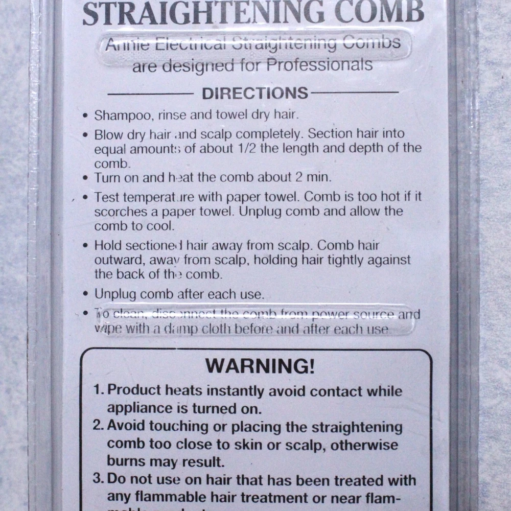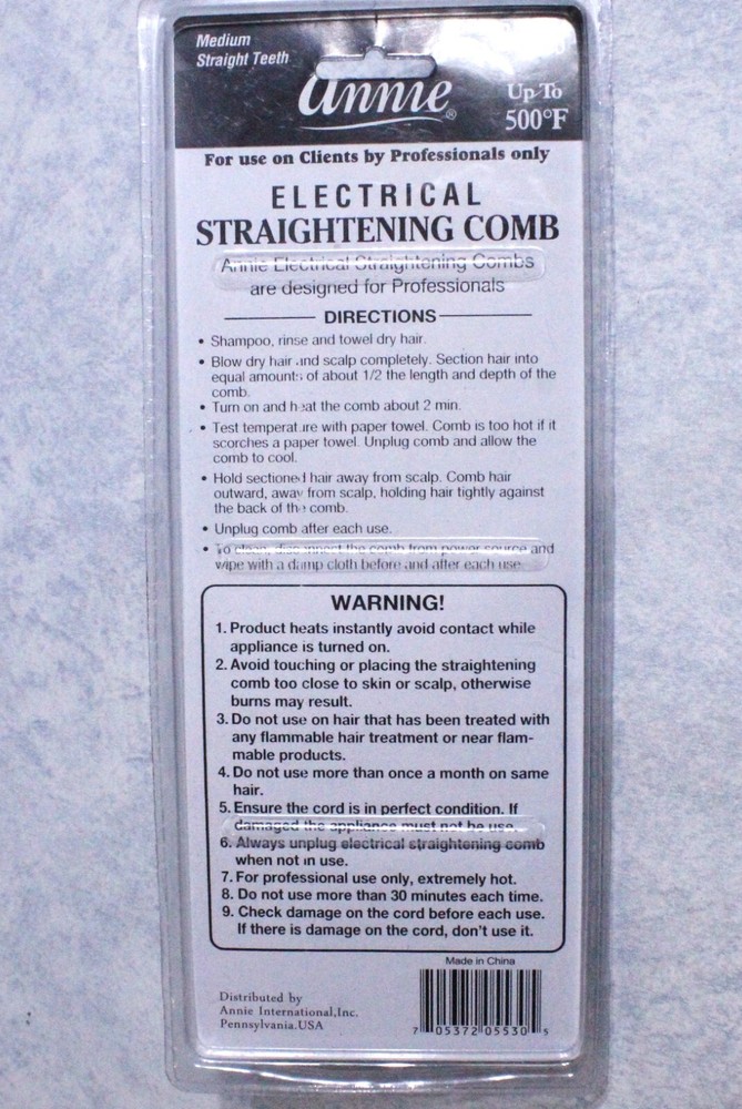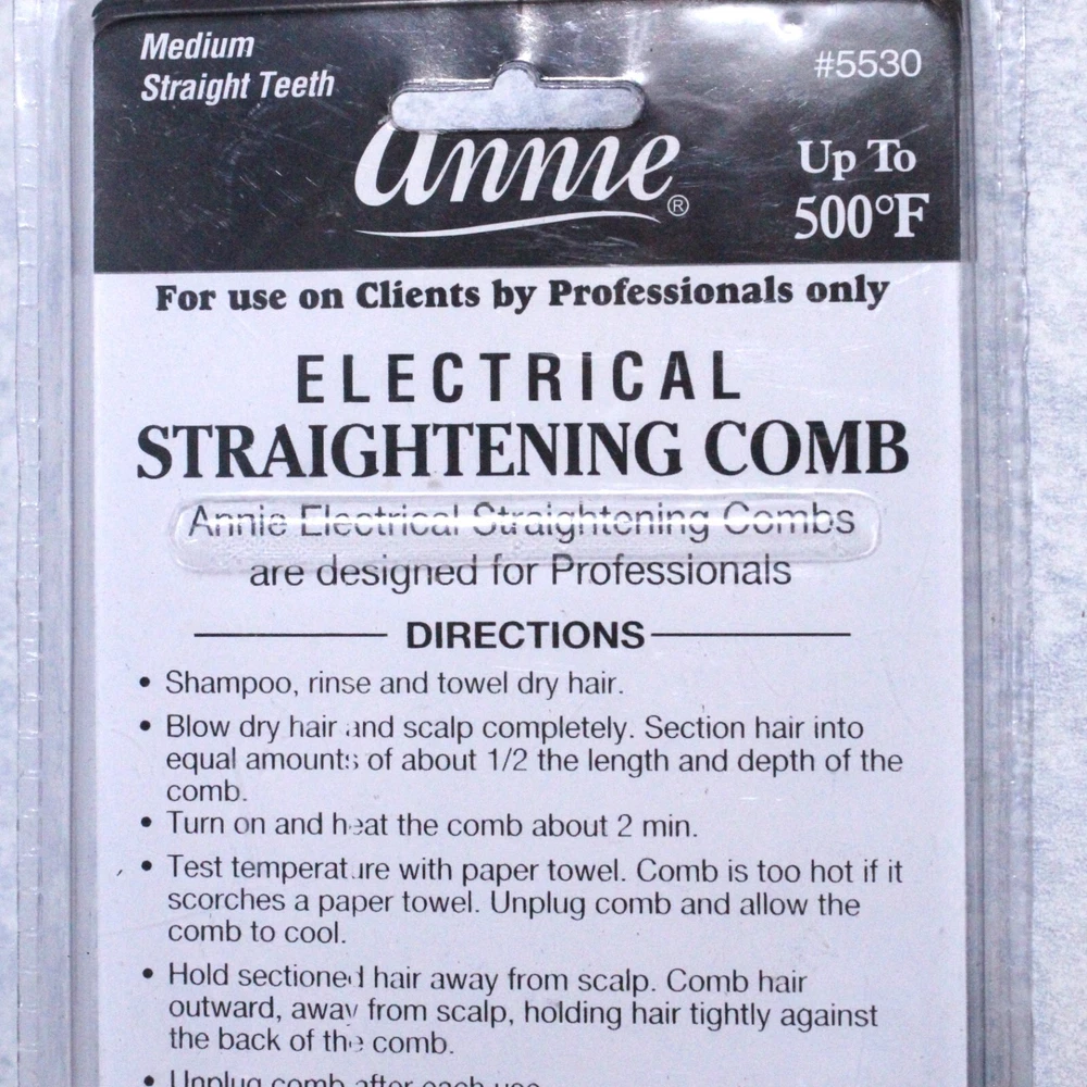 Annie Hair Straightening Comb Medium Straight Teeth Professional Electrical #5530. This listing includes all of the items that appear in the attached pictures. If the item is not pictured it is not included in this listing, unless otherwise stated. ~~~~~~SAME DAY SHIPPING if completed by 12PM (NOON)CST!~~~~~ **** I strive for 100% customer satisfaction with all purchases.**** **** If you are having an issue with a device or purchase PLEASE contact me through messages FIRST and I WILL respond with a solution or I will look into one. If you open a return request through eBay I will not be able to offer you a FASTER and MORE IMMEDIATE solution to your specific situation.**** I appreciate your time and your business!! Please look around my store and take advantage of combined shipping with multiple purchases. Shoot me a message with a deal on the purchase of multiple items. I'm always ready to make a deal! Take care!