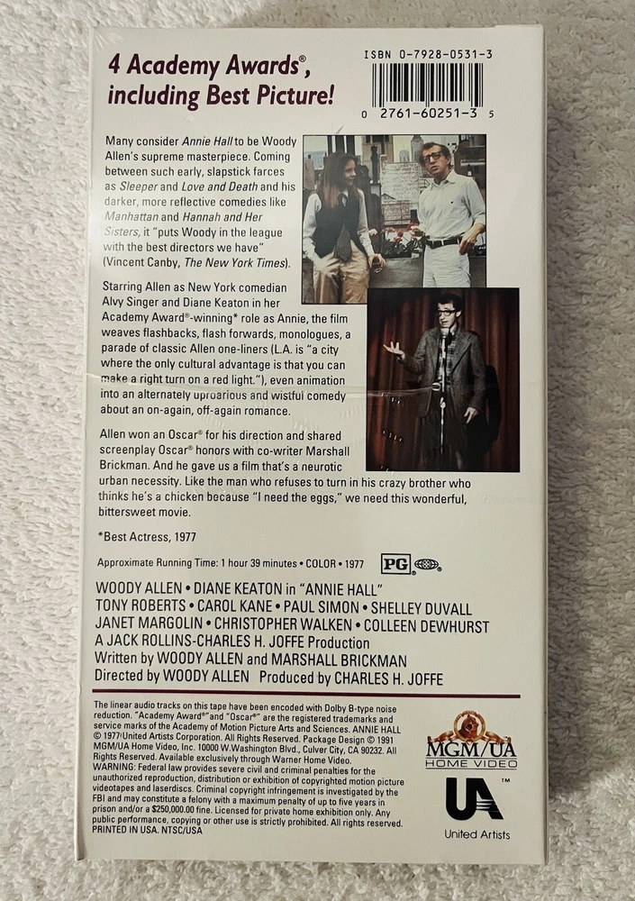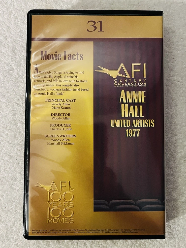 Sealed VHS Annie Hall #31 & clamshell case from Blockbuster. AFI Century Collection America’s 100 greatest movies. 2,500 sets made none sold in stores. View photos for details before you buy. Thank you for looking check out my other items! CL
