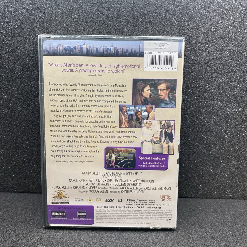 The product is a DVD of the 1977 movie "Annie Hall," directed by Woody Allen and produced by Charles H. Joffe and Jack Rollins. This comedy-contemporary film is in English and French, with a PG rating and a run time of 93 minutes. The DVD is sealed and includes bonus features. It offers a classic viewing experience of a beloved film that explores themes of love and relationships in a unique and thought-provoking manner. Please look at photos for condition of the item. Item may have damages or imperfections. If you’d like more photos please ask. All sales are final. If the item has a digital code it might be expired and no refund will be issued for the order. No returns or cancellations. If there are any issues with your item please contact us. We want to make sure our customers are happy with their purchase. If item is damaged during shipping process please keep all bubble wrap/packaging material & box. We do combined shipping upon request. Please wait for an invoice before completing your payment. Thank you!
