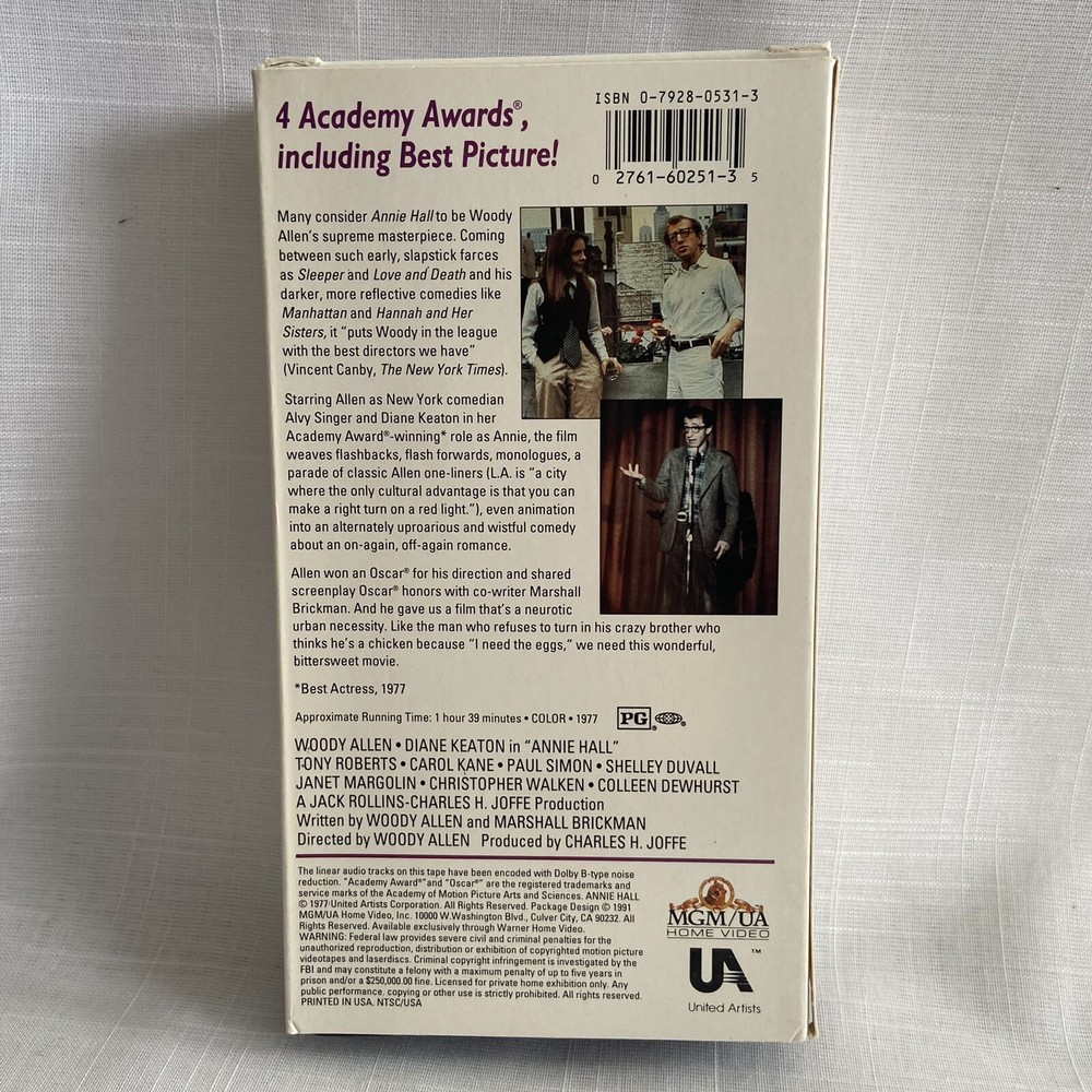 Tape is in great shape. Sleeve has minimal wear. See pictures for condition. Annie Hall (VHS, 1991, Contemporary Classics) Diane Keaton Woody Allen. B...