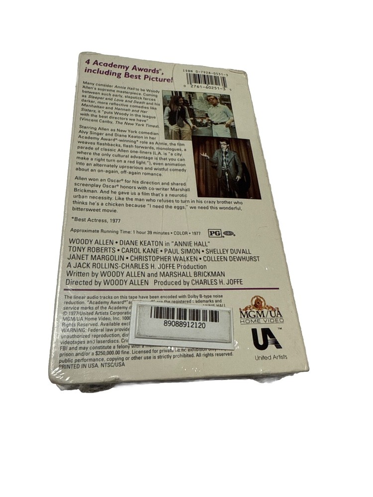 This VHS tape features the classic comedy film "Annie Hall" directed by Woody Allen and Allan Stewart Konigsberg. Starring Diane Keaton and Woody Allen himself, this movie is a must-have for any fan of the genre. The edition is Contemporary Classics and the language is English. The tape is in the NTSC signal standard and has a G rating. It falls under the category of movies and TV and is a VHS tape. The release year is 1977 and the studio responsible for the release is MGM Home Entertainment. The movie is a classical sub-genre and was filmed in the United States.
