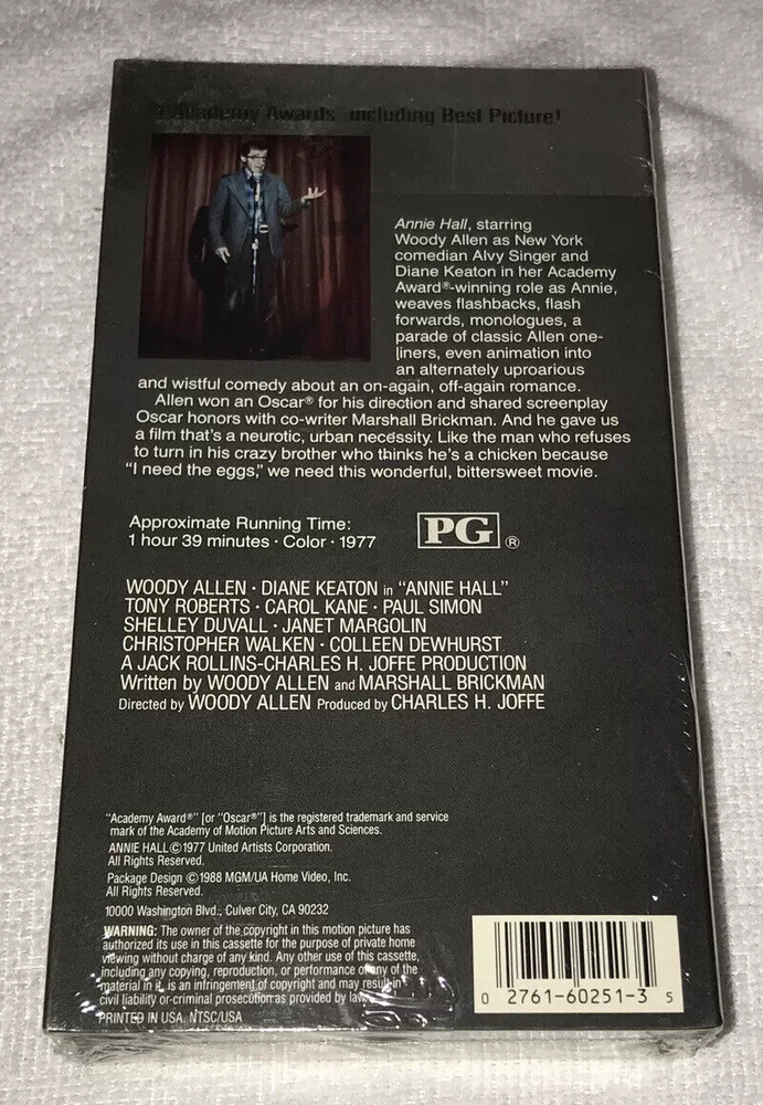 Annie Hall starring Allen and Kenton MGM/UA 1988 VHS Movie New Factory Sealed Complete. Still Factory Sealed. Excellent+++ Condition! BEST BUY PRICE-TAG $$$.