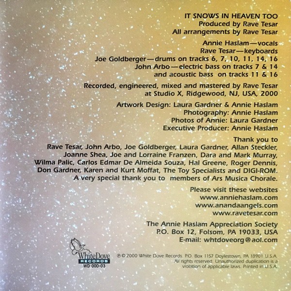 Media Condition : Very Good Plus (VG+) Sleeve Condition : Very Good Plus (VG+) Notes : A Christmas album by Annie Haslam Track List : 1. Oh Holy Night 2. Silent Night 3. The Snowman 4. It Snows In Heaven Too 5. It Came Upon A Midnight Clear 6. Joy To The World 7. The Christmas Song 8. Ave Maria 9. We Three Kings 10. The Little Drummer Boy 11. Christmas Time Is Here 12. Away In A Manger 13. O Come, O Come, Immanuel 14. Have Yourself A Merry Little Christmas 15. Hark! The Herald Angels Sing 16. White Christmas Barcode and Other Identifiers : Barcode 654020000320 Seller Terms Thank you for your interest in our business! We are a volume based seller. Your order will be processed and shipped as soon as we can. We will provide a tracking number and mark the order shipped when it does. Thank you for your patience. Please see our Shipping Policies and Rates below! Note: we are not open on weekends or holidays, so please allow a few extra shipping days if your order is placed during those times. WE DO NOT PROVIDE AUDIO CLIPS! Please do not ask! + Please note - All images are stock images and may not represent the Final Product, please read the Condition Grading and Description Details for any defects or variation. + CD grades are for the disc and the artwork, not the case. Jewel Cases do not get graded. None of our CDs are in Long Boxes + If you decide to cancel an order after paying for it, you will be required to cover the cost of the Paypal fee as it's no longer refunded once payment has gone through. Please only pay for an order if you are going to follow through. + We ship directly to your Ebay address! If you would like your order to be shipped elsewhere, please notify us immediately within your order. +All items are shipped in new boxes with cardboard filler pads for protection. + We usually ship within 3-4 business days (we are closed on weekends) from "payment received" date. If you need your order to ship faster, contact us about Rush Priority Mail shipping options. +If you have any special shipping requests, please let us know upon paying for your order and we will do our best to accommodate you. You must provide your shipping requests with every order you place. Otherwise, we will ship how we feel it should be shipped. We are not mind readers and process hundreds of orders a day. There is no way we can remember every shipping detail. +Due to our volume of business, all orders with missing items will be refunded and the order will be shipped as is. If you would like us to handle your order in a different manor than this, you must contact us within your order before we ship. + Please do not buy items if you do not intend to pay. All orders will be cancelled and re-listed after one month if we do not receive payment. + Delivery confirmation is included in the price of your order. + If you are not happy with shipping rates, all orders may be cancelled. + You have thirty days from ship date to contact us about any problems with your orders. No returns or refunds after the 30 day mark.