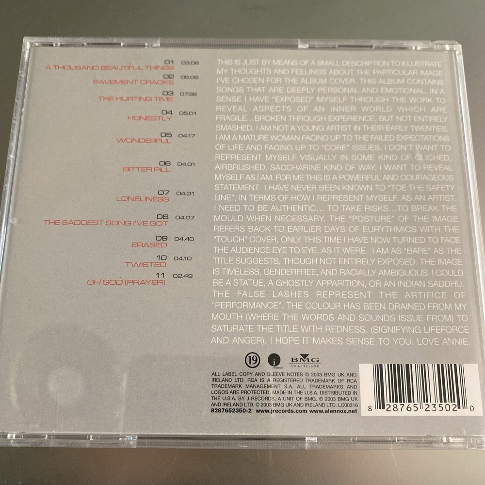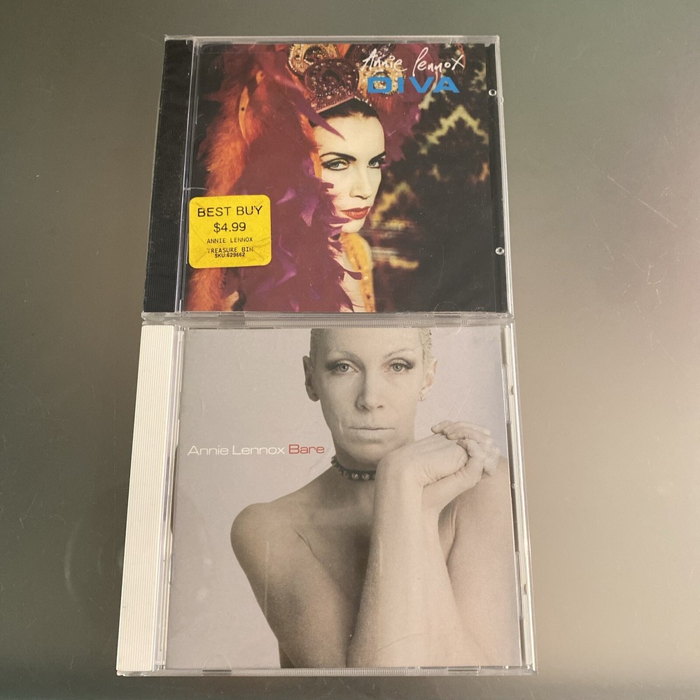 This lot includes two CDs by Annie Lennox: Diva, which is still sealed and has never been opened, and Bare, which has been opened but is still in great shape. The new CD is in the CD grading of Mint (M) and have been released under the record label Arista/Sony BMG in 2007. The case type is a Jewel Case, and the case condition is Good Plus (G+) with some cracks- see photos. The CDs are rock and pop genre, and the inlay condition is Near Mint (NM or M-). This lot is perfect for any music lover who wants to add these great CDs to their collection.