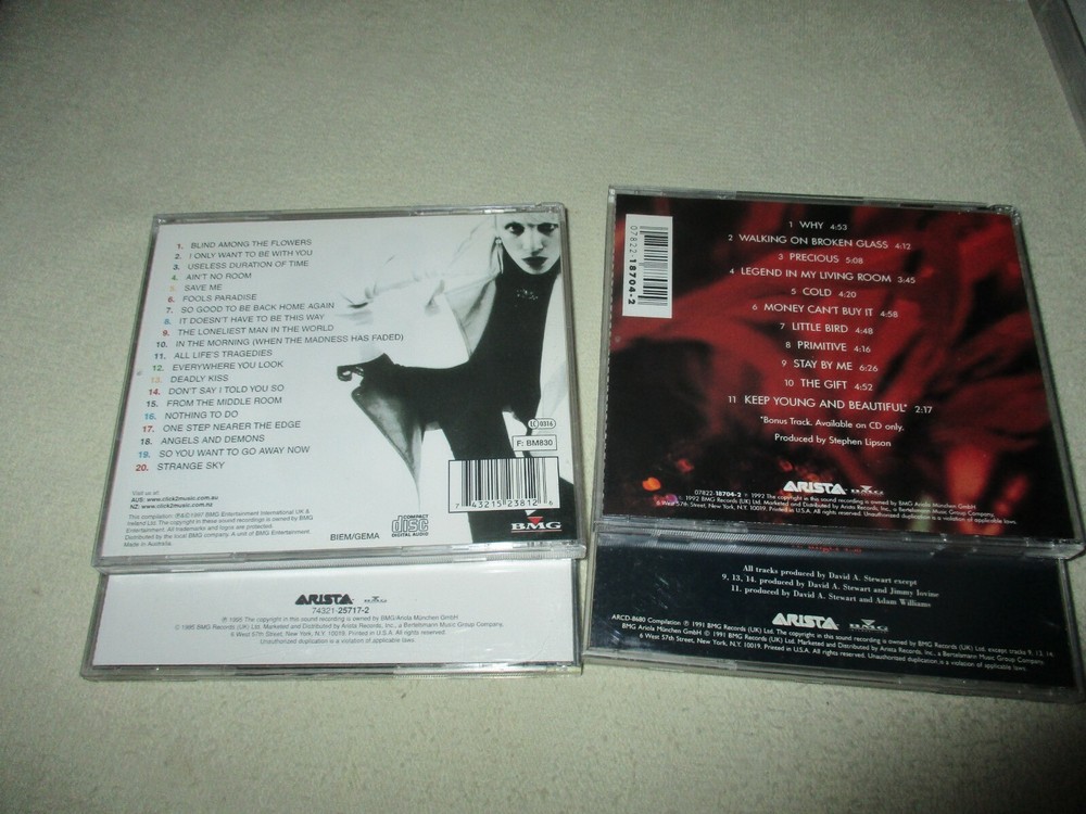 Sarge's Records is on Facebook! Please use the extra pics for all track & artist info - Thanks From Eurythmics, Tourists & Annie Solo Used items in very good condition, they will be mailed carefully Pretty much all shippings will be sent media mail boxed carefully. Tracking will be used and info uploaded to you. I international mailings are expensive and most likely will not come in a jewel case. I'm grateful to sell an item and if you're interested please contact me for a quote on the cost. Lastly, I am happy to hold off and combine multiple purchases to save you on mailing. Media mail is inexpensive and additional purchases will add very little to your initial cost. Thanks