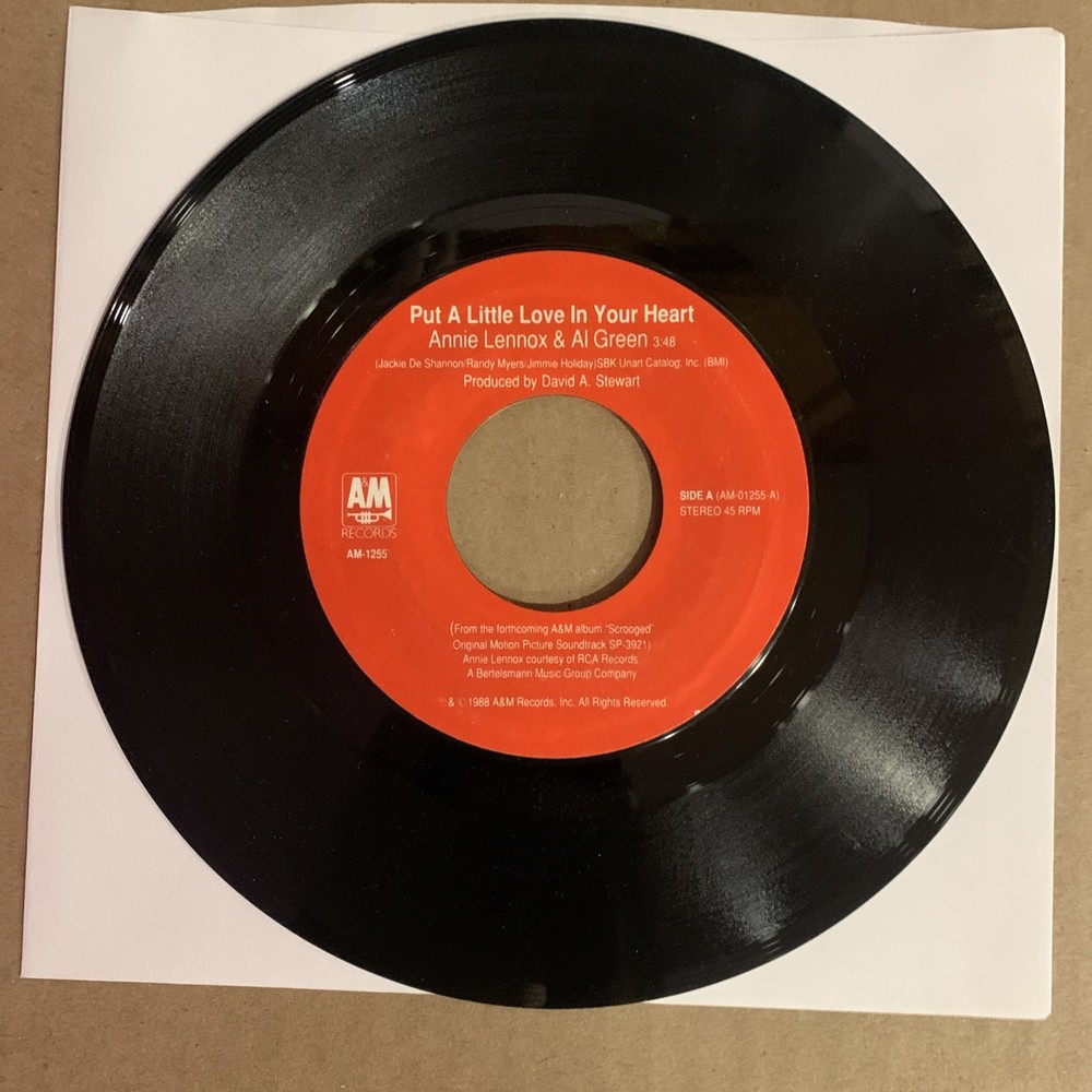 NO PICTURE SLEEVE, COMES WITH GENERIC SLEEVE Artist: Annie Lennox & Al Green (side A)/The Spheres Of Celestial Influence (side B) Label: Side A: Annie Lennox & Al Green - Put A Little Love In Your Heart Side B: The Spheres Of Celestial Influence - A Great Piece Of Love Condition: VG+, writing on label side B If interested in multiple items please message with items wanted.