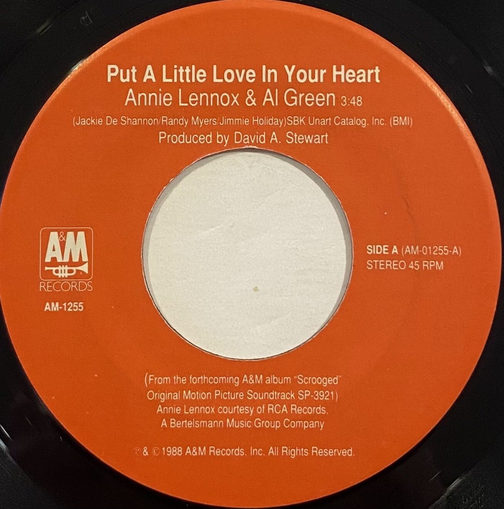 Annie Lennox & Al Green – Put A Little Love In Your Heart – A&M Records – AM-1255 - 1988 45 RPM 7" Single in Near Mint Condition. Looks and sounds fantastic. Please have a listen before buying. Thanks for looking!