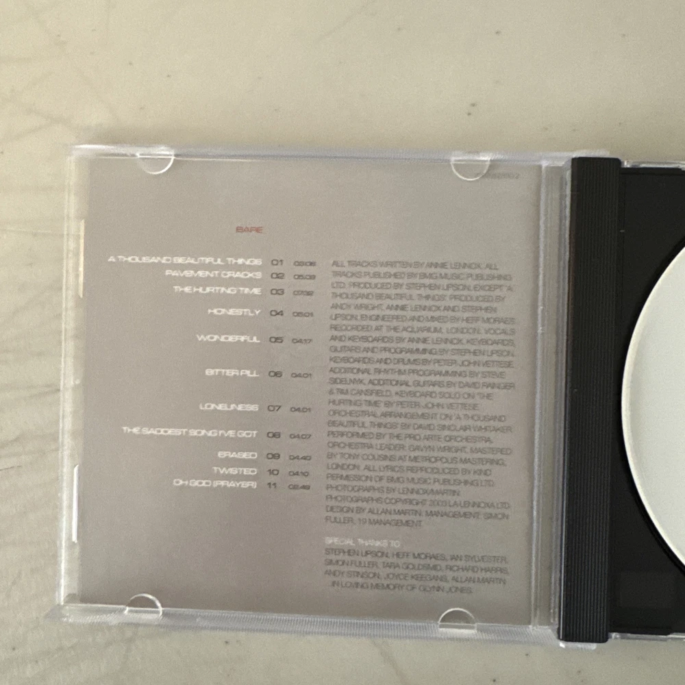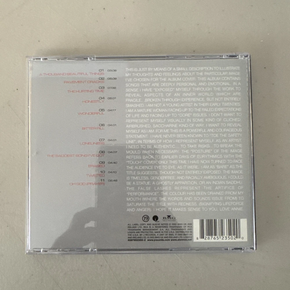 I am happy to combine shipping. Request an invoice from your cart and I will send an invoice with combined shipping. Annie Lennox CD Lot Medusa & Bare EX/VG+ Please see photos of the item in this listing. I use Goldmine Grading. Please see definitions below. Special note: I use EX when the CD is better than VG+ but Not quite NM-. Ships quickly and securely. Please reach out with any questions. Thank you for looking. I take returns so you can buy with confidence. RETURNS: If you are not happy with your purchases for any reason, just contact me and we can get things resolved. I would appreciate the opportunity to make things right before you leave feedback. Thank you. CD GRADING MINT CD: Perfect. Never been played. No scratches Cover: Insert, Inlay, Booklet, Sleeve, Digipak, Digi-book in Perfect Condition No wear, marks, no other imperfections - possibly still sealed. Near Mint (NM or M-) CD: Near Perfect - It may have been played but no signs of wear, no promo holes. Cover: Near Perfect - No signs of wear Very Good Plus (VG+) CD: Has been played. A few minor scuffs/scratches. Cover: Insert/Inlay/Booklet/Sleeve/Digipak: Slight wear, marks, indentations, it may possibly have a cut-out hole (or similar). Very Good (VG) CD: Quite a few light scuffs/scratches, or several more-pronounced scratches. This has obviously been played, but not handled as carefully as a VG+. Cover: Insert/Inlay/Booklet/Sleeve/Digipak: More wear, marks, indentations than a VG+. May have slight fading, a small tear/rip, or some writing. Good (G), Good Plus (G+) CD: There are a lot of scuffs/scratches. However it will still play through without problems. This has not been handled with much care at all. Cover: Insert/Inlay/Booklet/Sleeve/Digipak: Well worn, marked, more obvious indentations, fading, writing, than a VG - possibly a more significant tear/rip Poor (P), Fair (F) CD: Lot of scuffs/scratches The CD may or may not play some or all of the tracks. Cover: Insert/Inlay/Booklet/Sleeve/Digipak: Very worn. It may have obvious writing on it, it may be ripped/torn, or significantly faded, or water damaged.