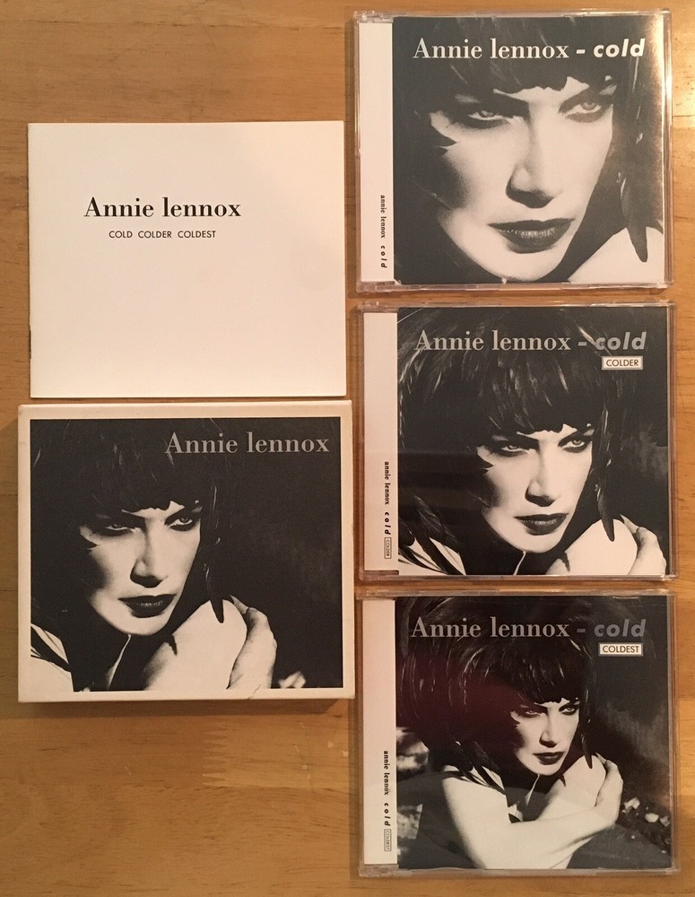 For world-wide UK pop / rock fans, here is the nice Cold Colder Coldest 3- CD set from Annie Lennox ( Eurythmics ). This is the Japanese import! 4 tracks on each CD. 1993 release on BMG Victor Japan (BVCP-8901-3). Discs and slim jewel cases are in nice condition. Includes a booklet. The CD cases and booklet slide into a cardboard sleeve (box); both the booklet and the outside of the box show a little wear / aging. NO obi. Not a cut out or promo. Japan Post Small Packet shipping (includes a tracking number) for US buyers is $14.95. Japan Post Small Packet shipping (includes a tracking number) for all other buyers is $12.95. I will gladly give you a discount on shipping if you buy multiple items. I can offer a further discount if I ship without the jewel cases (CDs and ALL artwork only). Please check with me. Finally, w hile most items are arriving in a timely manner, there may be a delay in the arrival of your CD. If you cannot wait 2-6 weeks, please do not buy from me. Thank you!