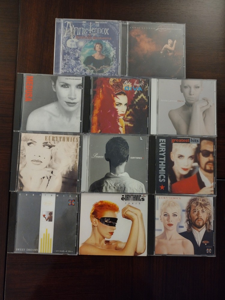 Annie Lennox / Eurythmics 11 CD Lot. Medusa, Diva, Songs of Mass Destruction, Bare, A Christmas Cornucopia (New/Sealed-small crack in the cover). Eurythmics- Greatest Hits, Savage (Some water damage to front and back cover, CD in excellent shape), Revenge, Sweet Dreams, and Touch (remastered special edition with 7 bonus tracks).