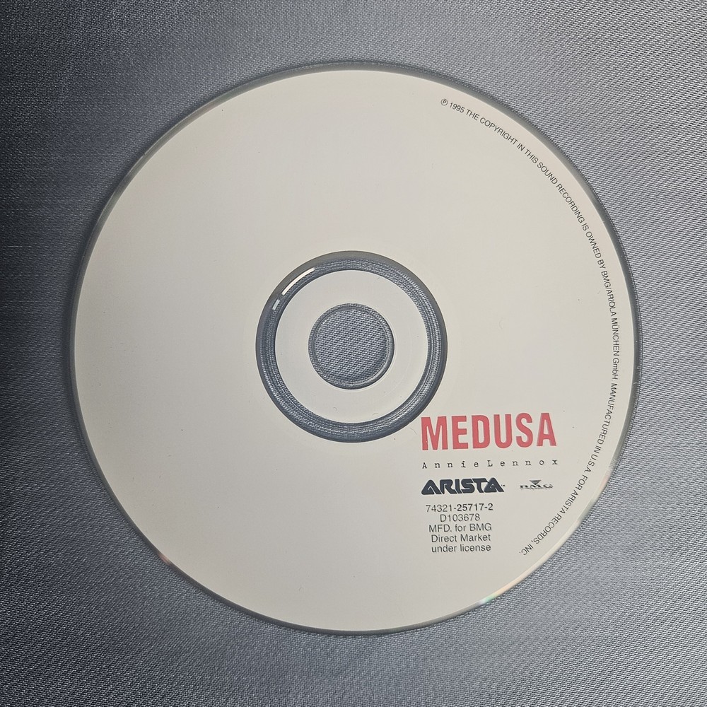 Annie Lennox's 1995 album Medusa on audio CD. Purchase includes disc only - will be shipped via USPS Media Mail in paper sleeve sandwiched between protective cardboard. Any reasonable offer will be considered, save more by purchasing multiple items and combining shipping.