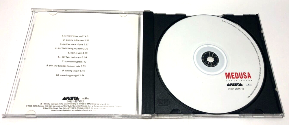 This is an audio Compact Disc (CD) of Annie Lennox's 2nd solo studio album, "Medusa" which was released in 1995. This record is a collection of Cover Songs. Its version of " No More 'I Love You's' " got a lot of radio air play for years. It also covers a Neil Young song, a Paul Simon song, and a Bob Marley song. It clearly wants to be something different . . . Please See Photos. This is a Gently Used, Complete CD package in Excellent overall condition. The actual Disc is Excellent to Near Mint, 99.9% Perfect (very few light surface marks, barely visible, that Do Not effect playability). The disc was play tested with no issues revealed. The Liner Booklet is Near Mint, and the clear plastic Jewel Case is VG+, w/ only 1 small crack on the back, No breaks, and only very light (hardly visible) outer surface marks. We ship Next business Day via USPS Media Mail service to the main 48 United States of America, Only. Check out all of our other great items by searching eBay seller ReSet_Media_83. Thanks for Looking!