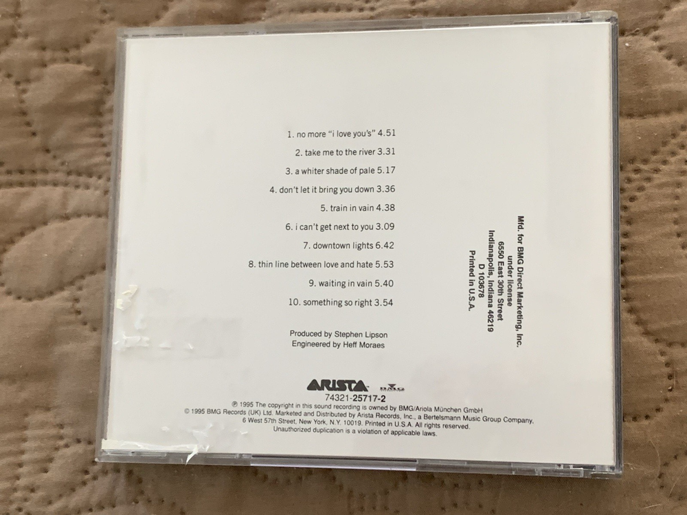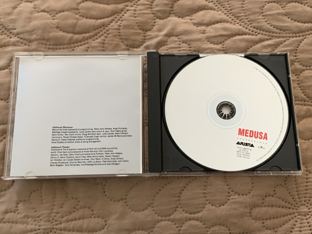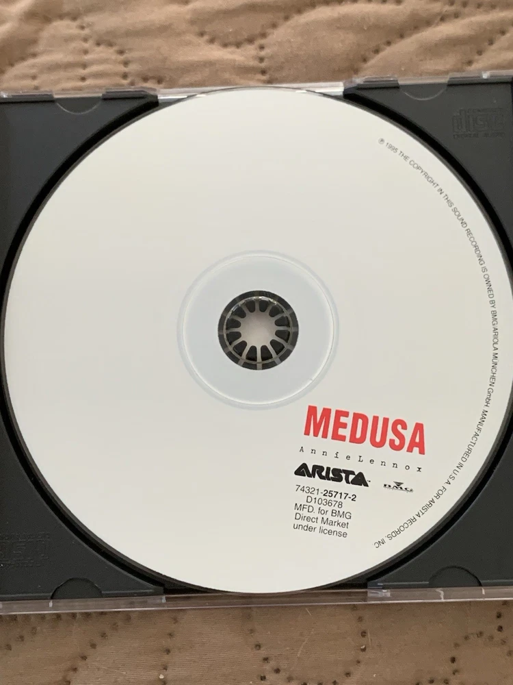 Annie Lennox's "Medusa" CD, released in 1995 by BMG, is a remarkable compilation of pop and electronic genres that showcases the artist's unique vocal talent. This album is a must-have for fans and collectors alike, offering a diverse range of tracks that highlight Lennox's versatility and charm. The CD comes in its original case, ready to be shipped the same day, ensuring a quick and secure arrival. With its rich lyrics and catchy melodies, "Medusa" remains a timeless piece that continues to resonate with audiences seeking a blend of intricate rhythms and heartfelt lyrics.